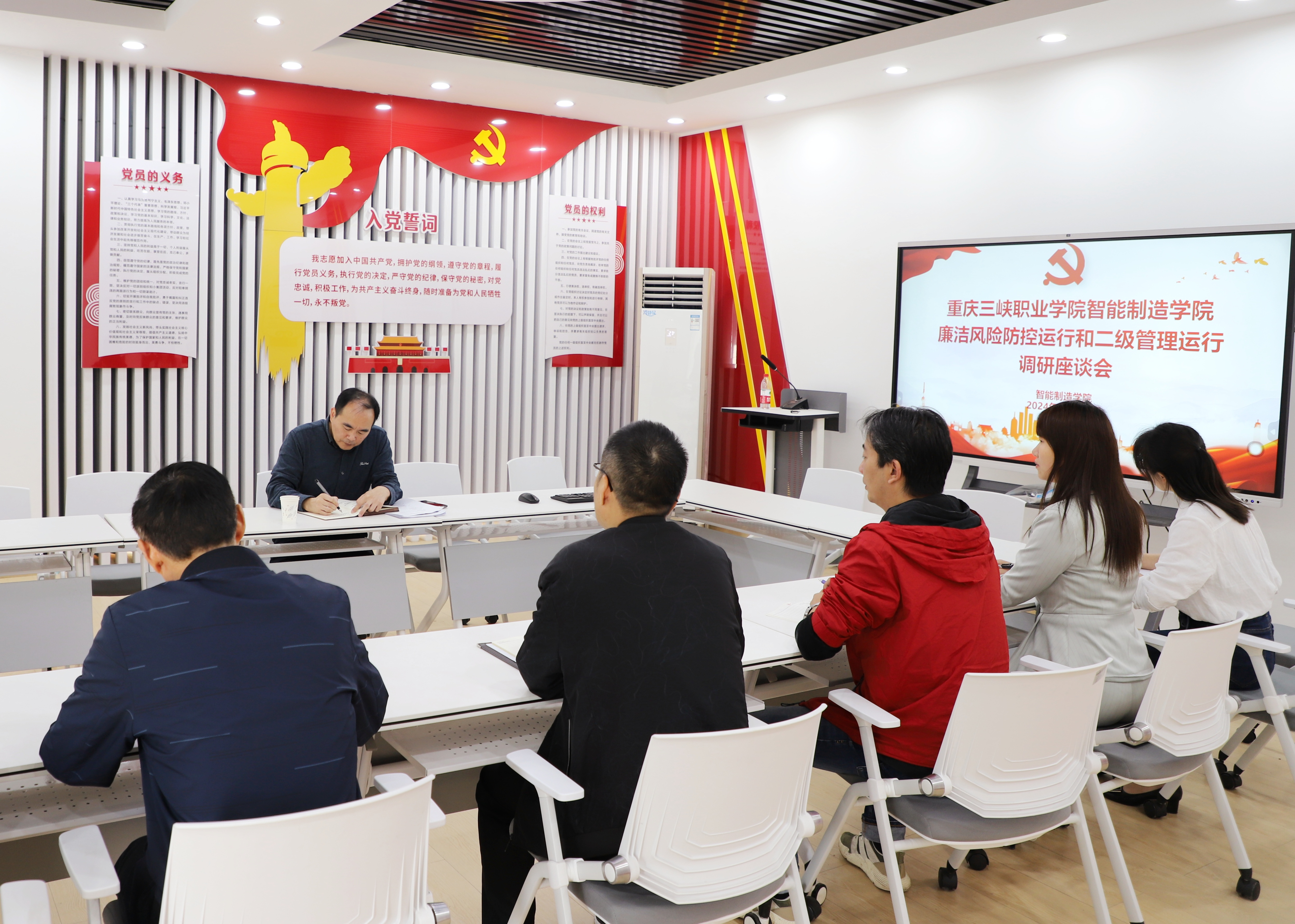 根据《重庆三峡职业学院廉洁风险防控和二级管理运行调研方案》的工作安排,10月29日上午,学院党委委员、纪委书记、监察专员米密到智能制造学院开展专题调研。智能制造学院班子成员、学工科、教学科、实习实训负责人等相关人员参加了调研座谈会。