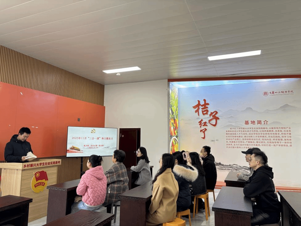 在“桔子红了”乡村振兴大学生社会实践基地,党员们集中学习《习近平谈治国理政》第五卷中“因地制宜发展新质生产力,实现高质量发展”等重要篇目。结合现场调研的所见所感,党员们围绕如何立足地方资源、运用新理念新技术助力传统农业转型升级,如何培养知农爱农新型人才等议题展开了热烈讨论。同志们一致表示要将理论学习转化为服务“三农”的实际行动。