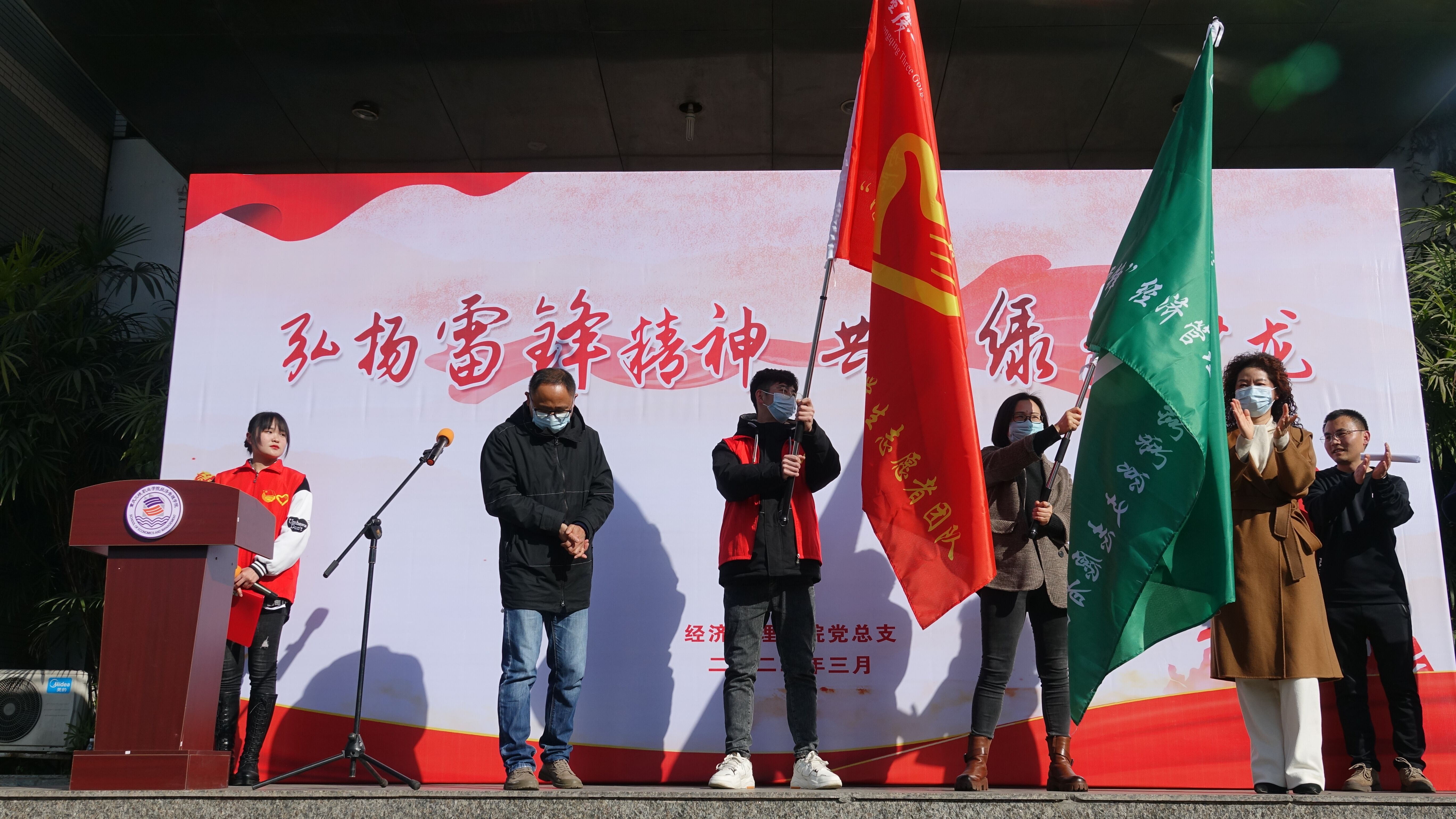 经济管理学院党总支书记、院长赵琳为“弘扬雷锋精神,共铸绿色沙龙”主题志愿服务月活动授旗并宣布活动正式启动。