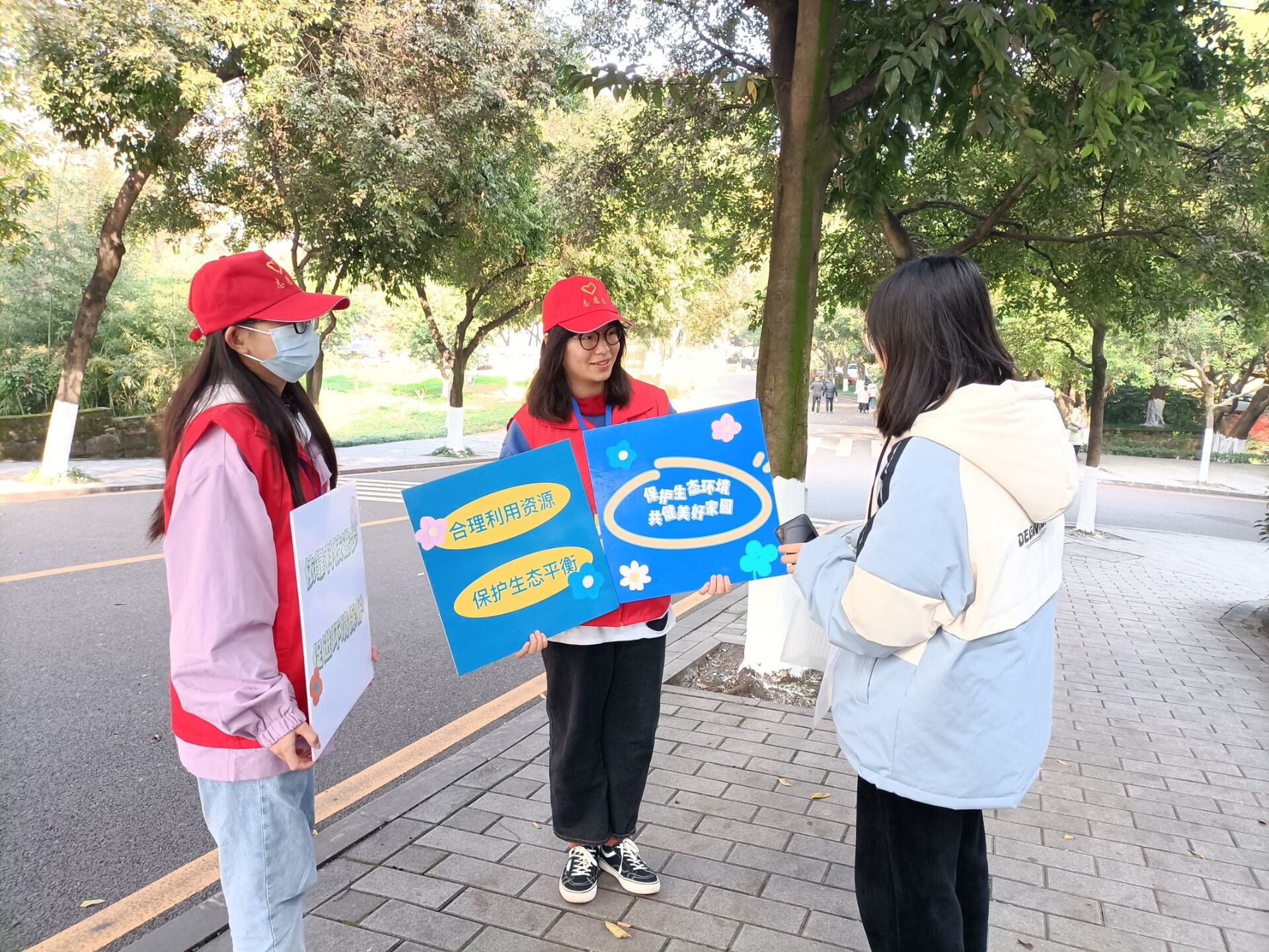 为进一步提升我院学子生态文明意识,知行合一参与生态文明建设,近日,我院青年志愿者在校园内开展态文明宣传活动。