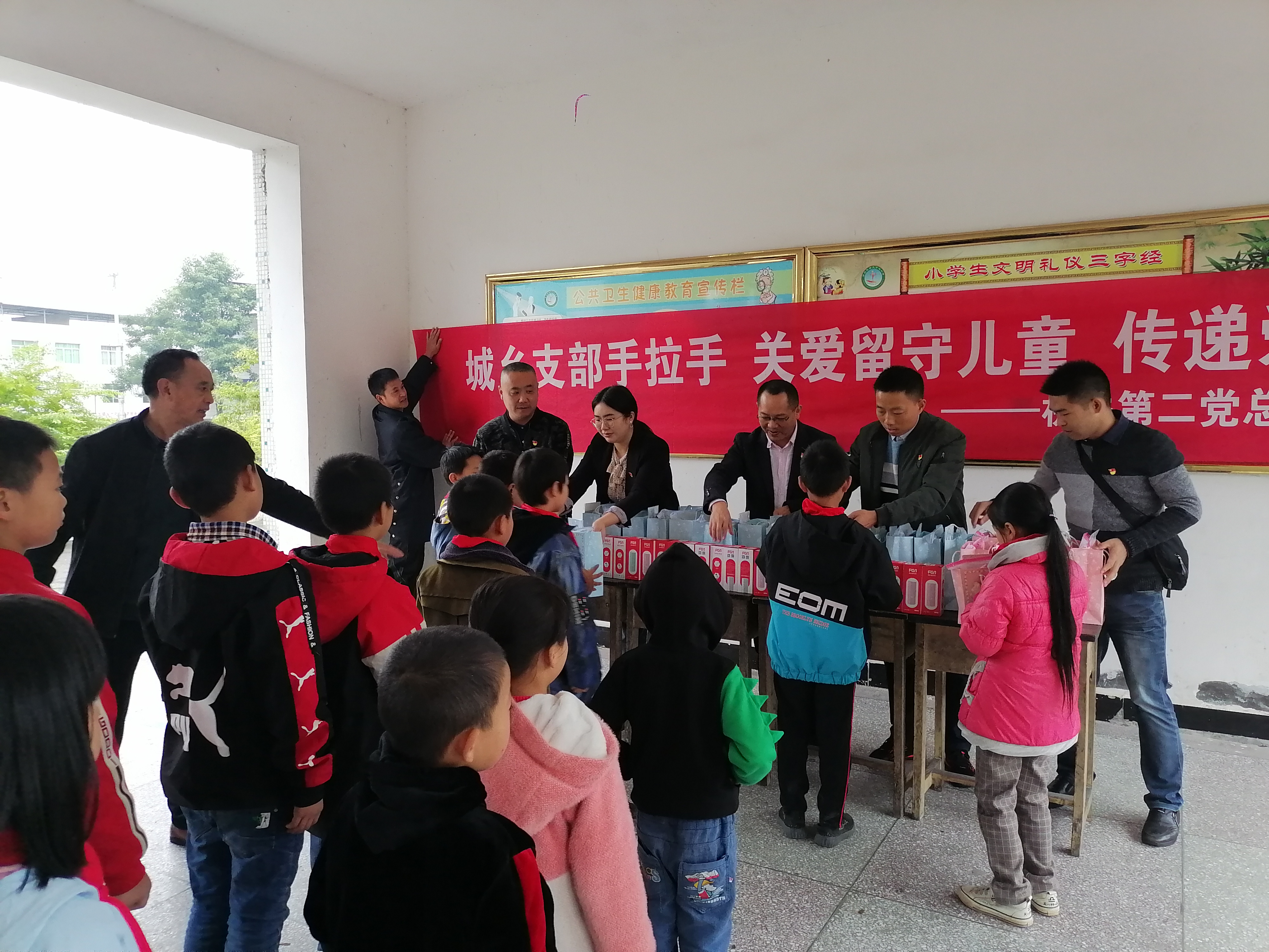 随后,机关第二党总支第三党支部来到三元乡小学,为25个留守儿童送去学习文具、保温杯,让他们感受到阳光与温暖,孩子们纯真的笑容和真挚的感谢也触动着支部党员们,曾理说到:“孩子们,你们要好好学习,知识就是力量,长大后你们要为祖国建设贡献出自己的力量。”