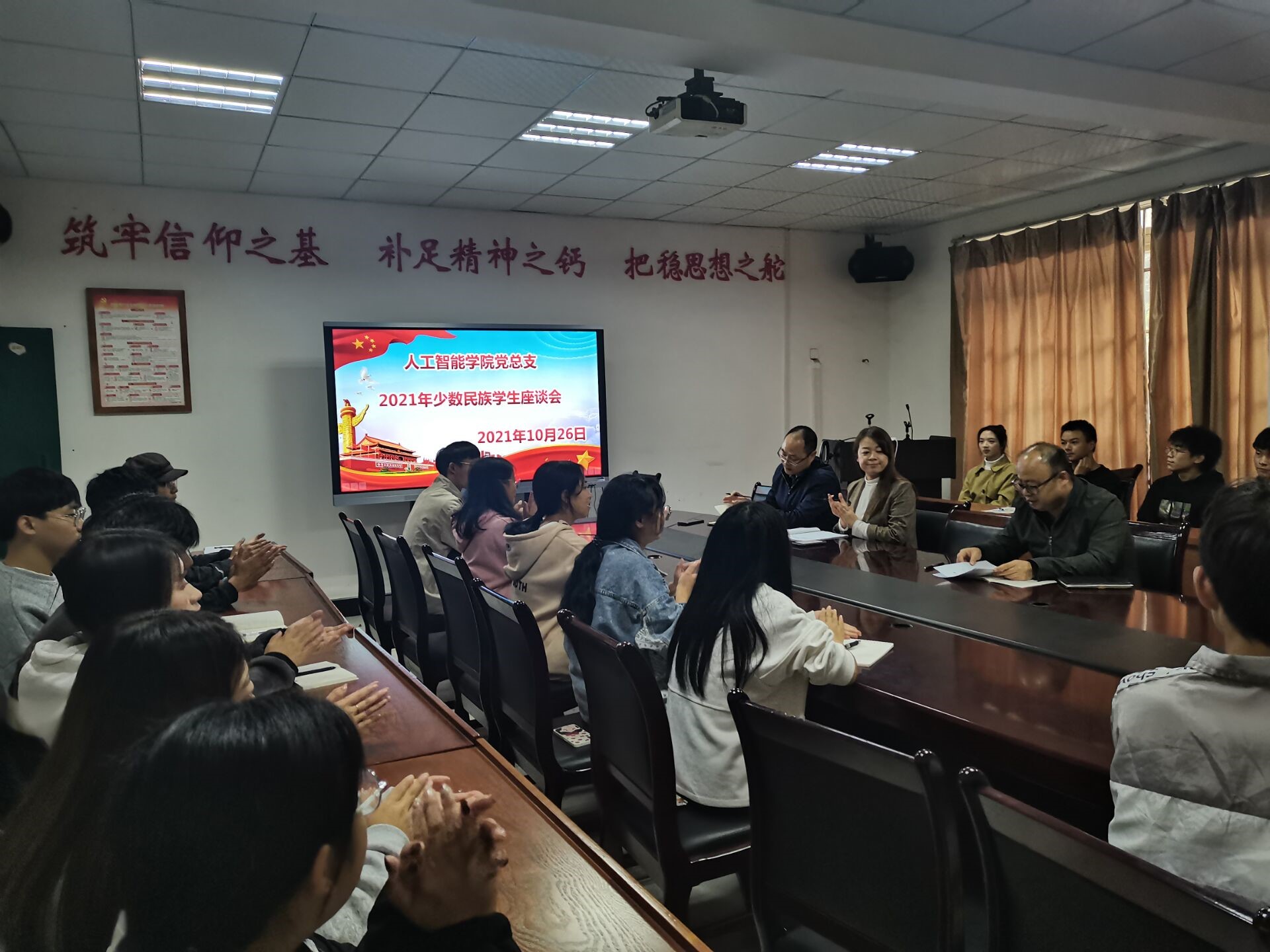 为学习宣传和贯彻落实《中国共产党统一战线工作条例》,把统一战线工作开展好,10月26日12:50,人工智能学院党总支在信科楼503会议室开展了2021年少数民族学生座谈会。会议由人工智能学院党总支副书记骆伟主持,支部书记雷蕾、吴勇帑及少数民族学生代表参加。