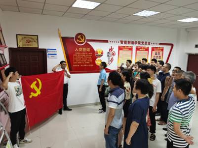 党总支首先组织60余名师生集中观看了庆祝中国共产党成立100周年实况直播,随后全体党员同志在熊江的带领下举行了宣誓仪式。仪式现场,新老党员们佩戴党徽,对着党旗郑重宣誓。誓言铿锵,广大师生党员铭记初心使命,厚植爱党爱国情怀。