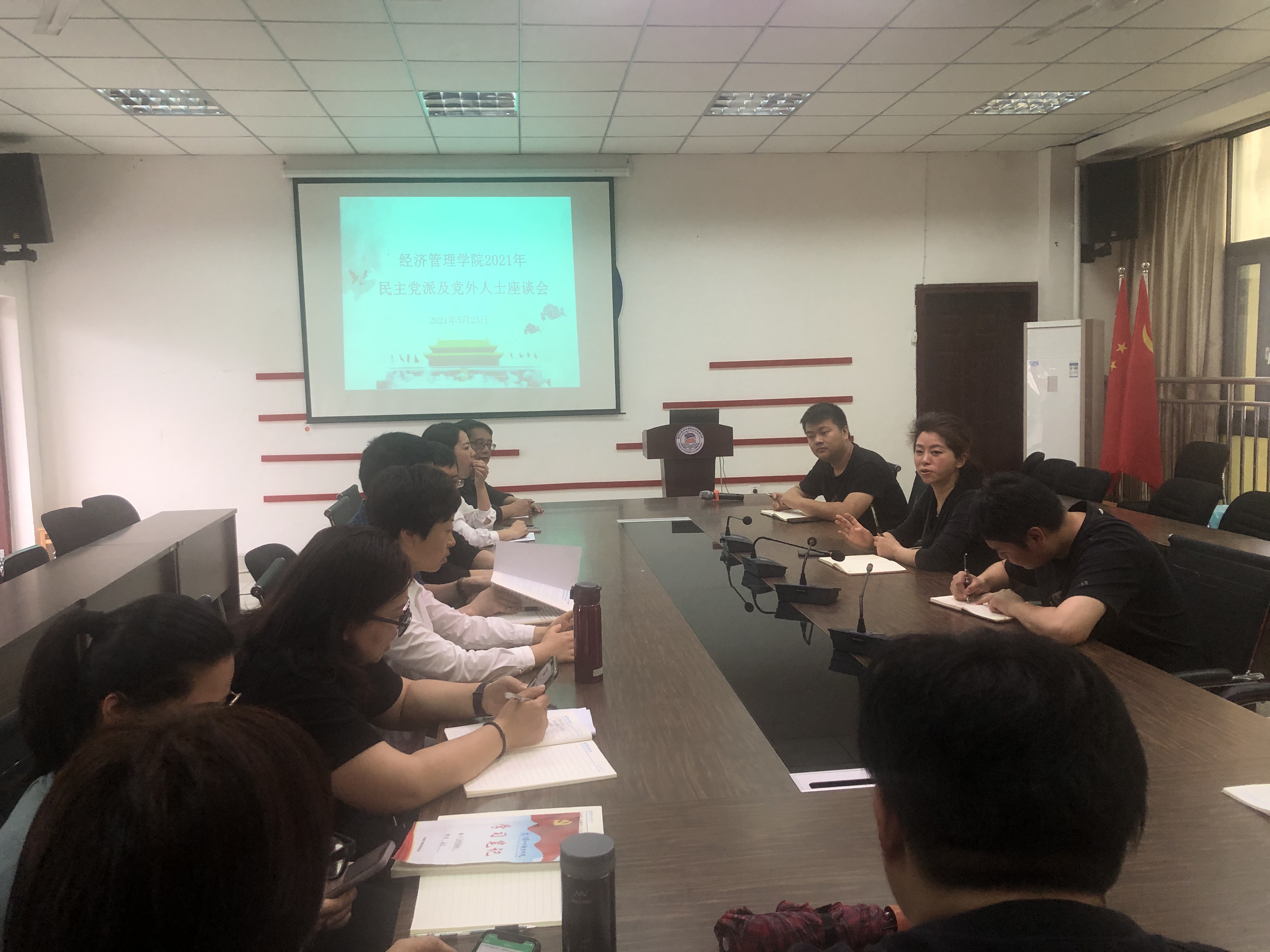 2021年5月25日下午,经济管理学院在奥训楼506会议室召开民主党派及党外人士代表座谈会,学院党总支委员、民主党派代表、无党派代表共计13人参加会议,座谈会由学院党总支书记赵琳主持。