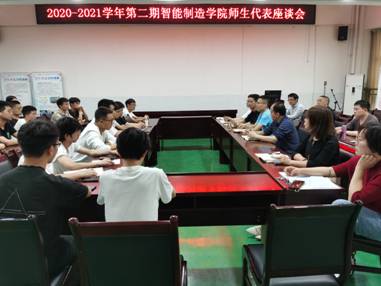 5月20日下午,智能制造学院2020-2021学年第二期师生代表座谈会在奥训楼308会议室召开。智能制造学院党总支书记、院长熊江,党总支委员、支部书记、各专业大类负责人、实习实训中心负责人、教学科、学工科以及各班学生代表共计40余人参加了会议。会议由智能制造学院学工科科长吴莉莎主持。