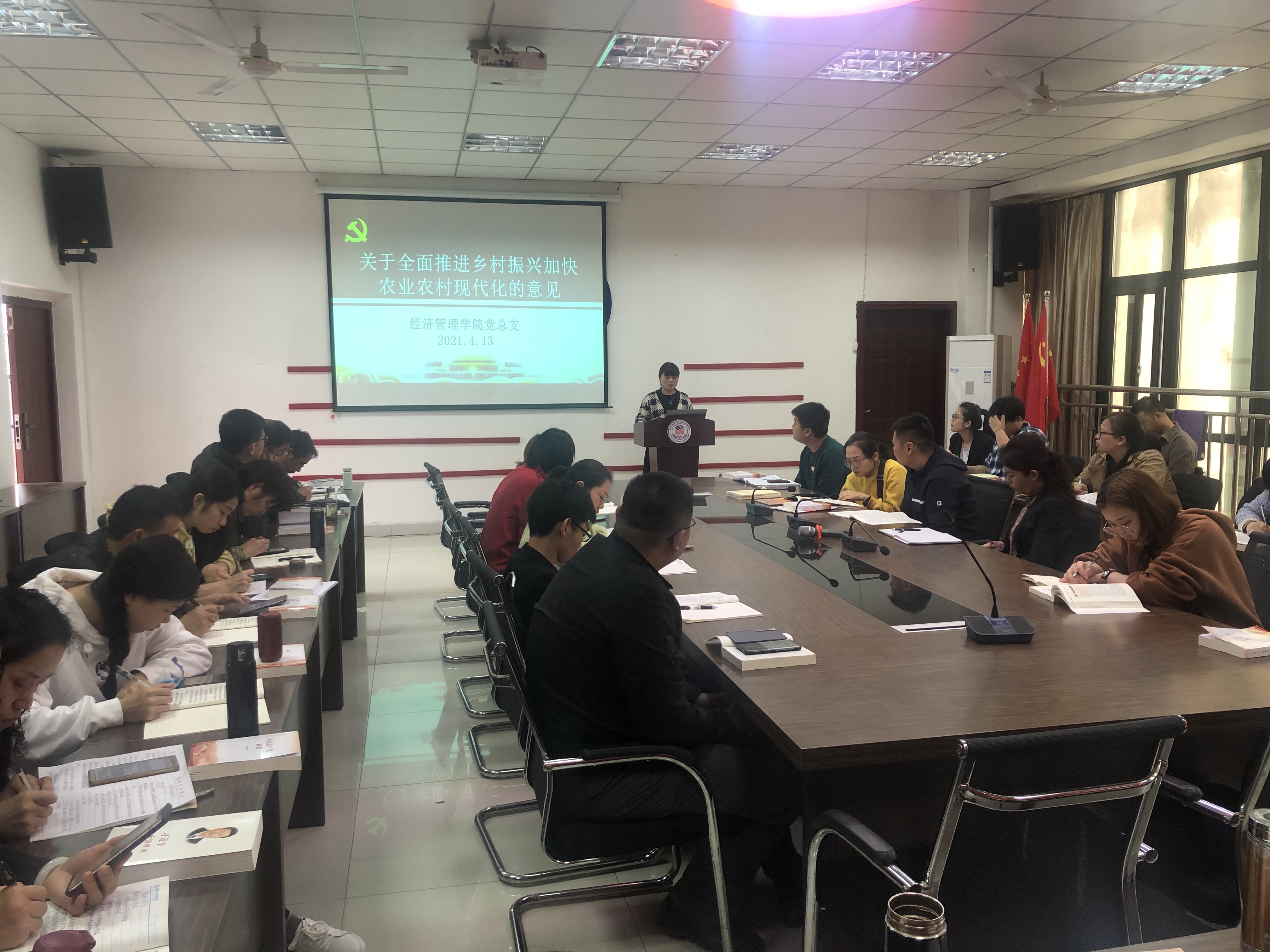 4月13日下午,经济管理学院在奥训楼506会议室召开全体教职工政治理论学习会议,全体教职工参加了会议,会议由学院党总支书记、院长赵琳主持。