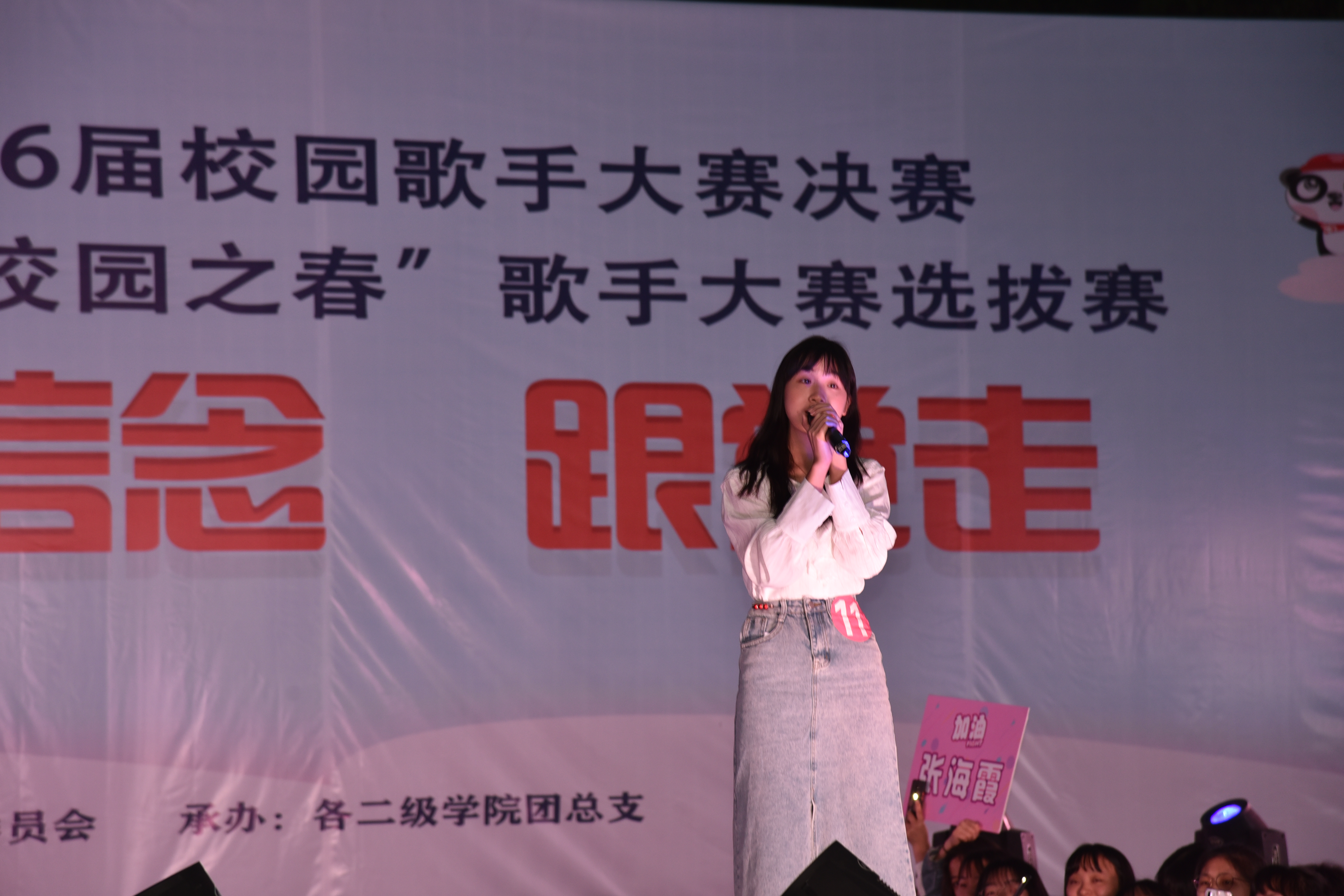 经济管理学院的卞星月凭借自己精湛的台风和动听的歌喉获得了大赛冠军,动物科技学院的晏朝政和经济管理学院的李鹏分别获得了大赛的亚军、季军。