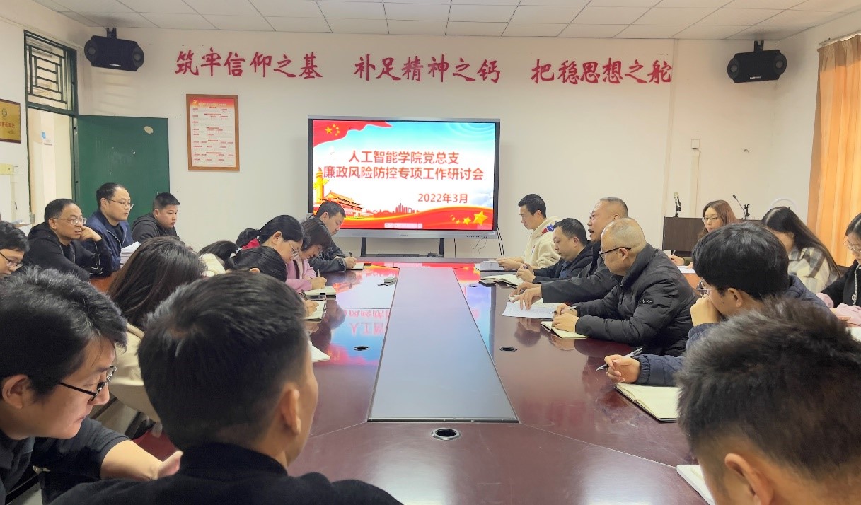 3月29日,人工智能学院党总支在信科楼503召开廉政风险防控专项工作研讨会。会议由人工智能学院党总支书记熊泽明主持,人工智能学院领导班子、总支委员、支部书记、部分教研室主任参加。