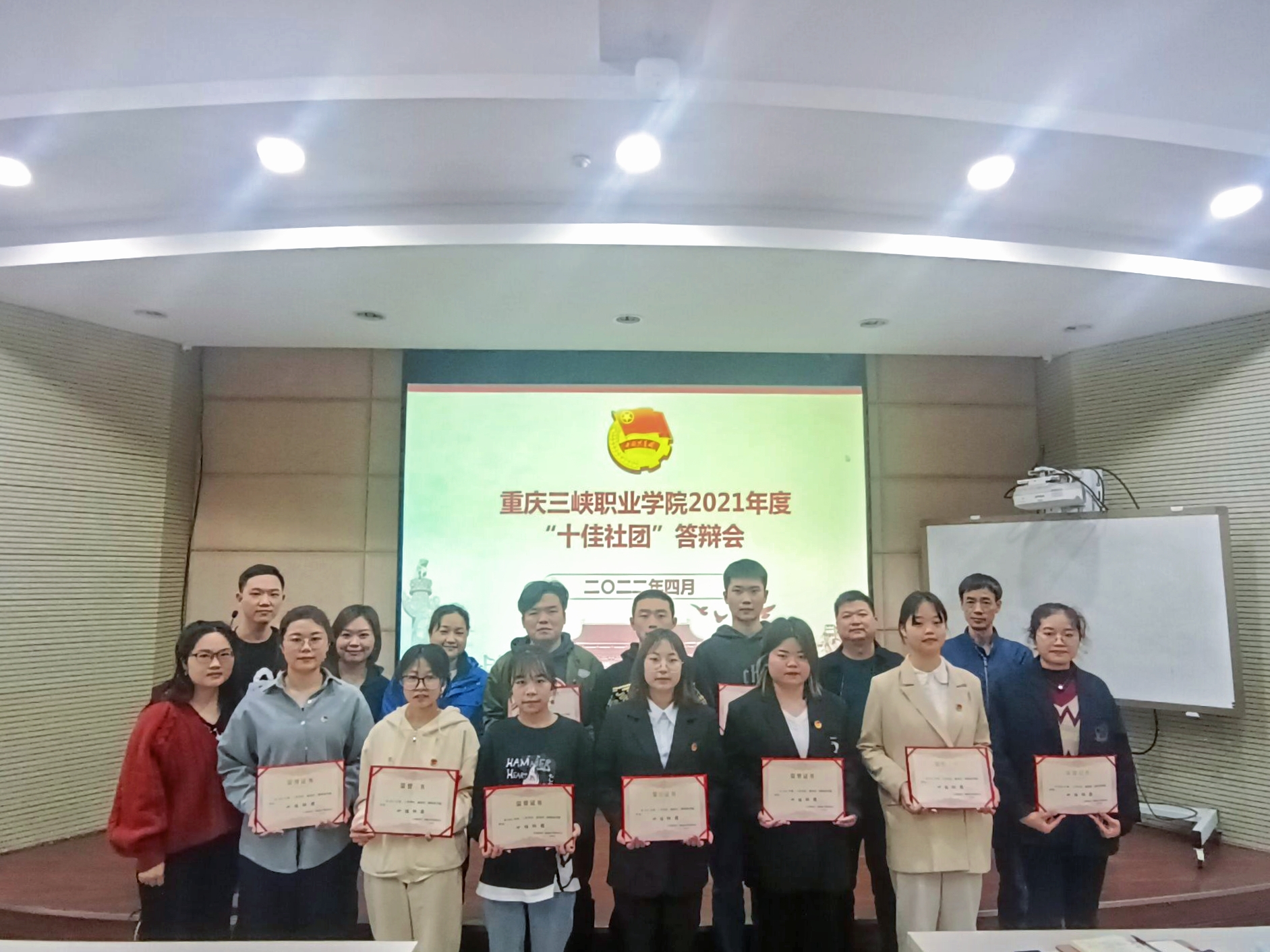 为充分发挥学生社团育人功能,促进学生社团健康有序发展,根据学院下发的《重庆三峡职业学院学生社团建设管理办法》文件要求和重庆三峡职业学院2021年度“十佳社团”评选工作安排, 院团委于4月15日举办了重庆三峡职业学院2021年度“十佳社团”评选答辩会。学院党政办主任、团委书记马绍文,学工部副部长陶毅,招生就业处副处长赵婵娟担任答辩会的评委。