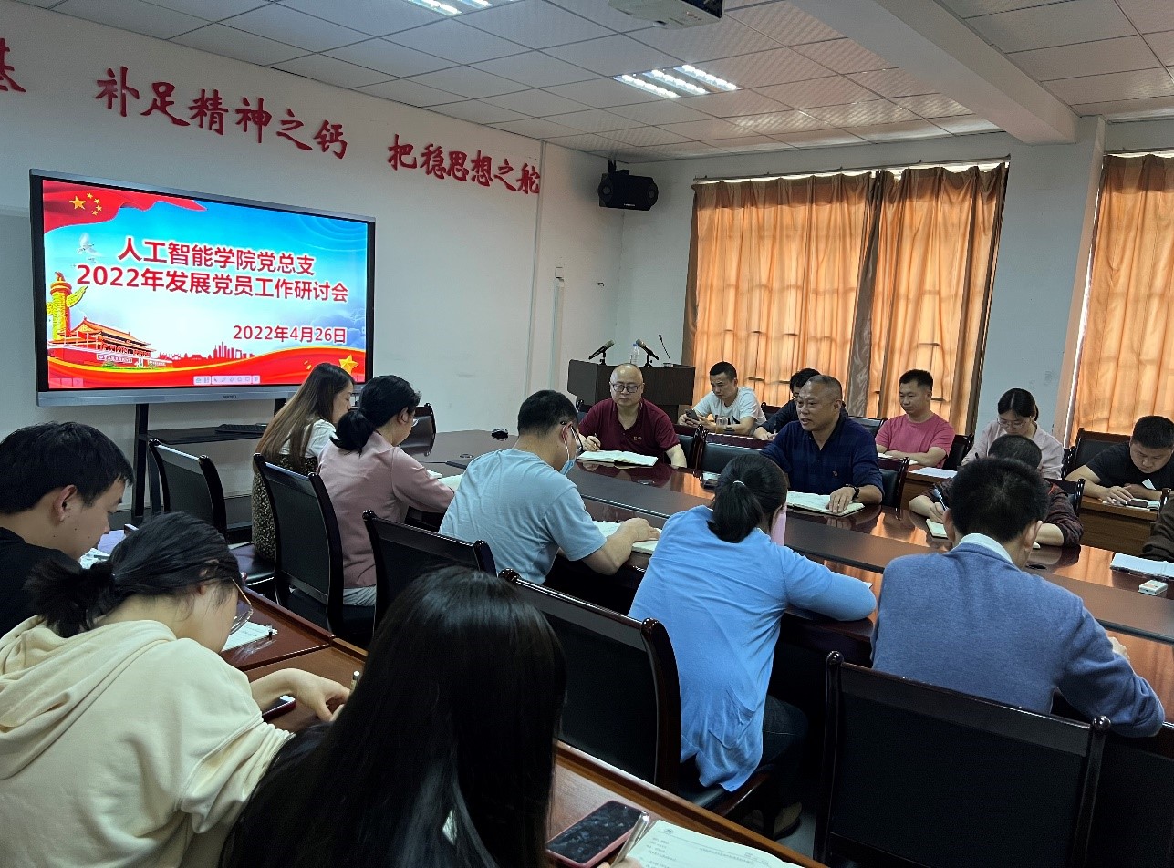 为进一步规范发展党员工作,确保党员发展工作质量。4月26日15点,人工智能学院党总支在信科楼503会议室召开了2022年发展党员专题工作研讨会。会议由人工智能学院党总支书记熊泽明主持,30余名党员同志参加。