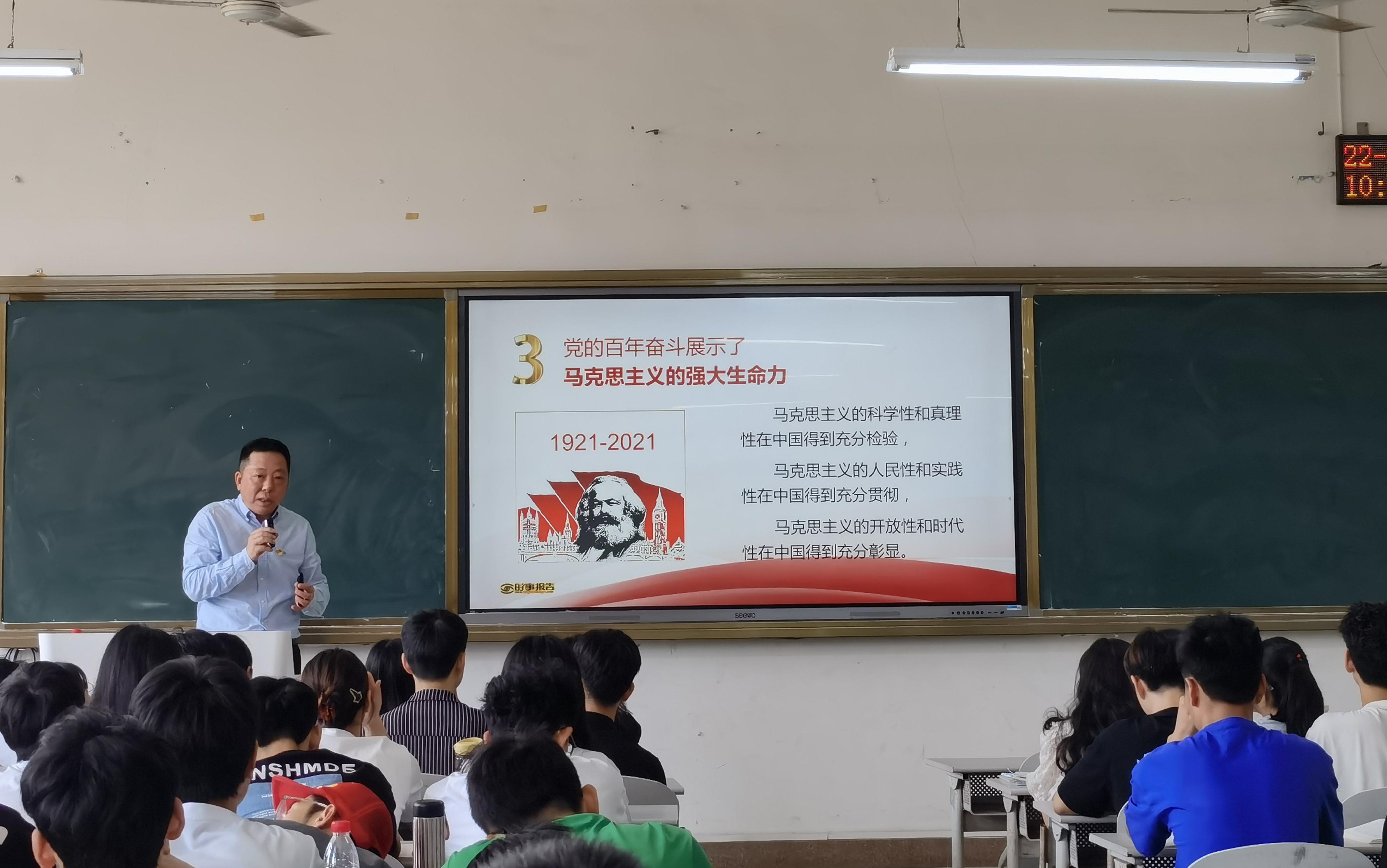陈章书记从“五个纬度”阐述了党百年奋斗的重大意义;结合中国共产党“求什么、为什么、靠什么、凭什么”对伟大建党精神进行了深入阐述;并希望大家进一步把握“九个必须”精髓要义,认真学习习近平总书记在中国人民大学考察时对中国青年的寄语,凝聚前行力量,跑出自己的最好成绩。
