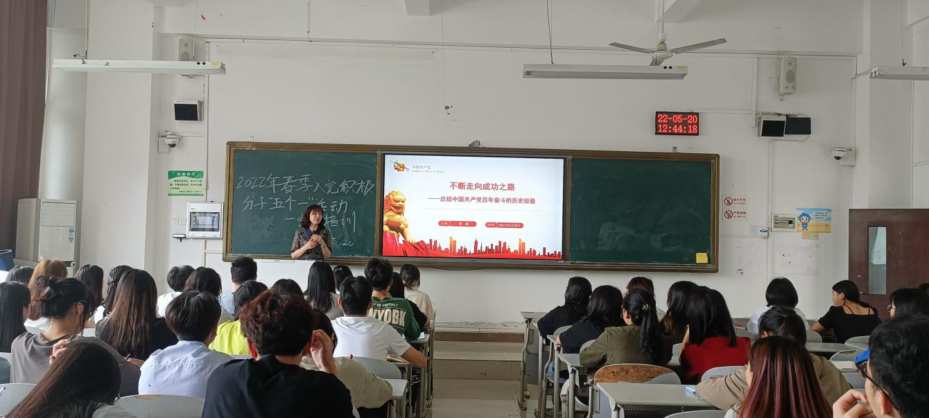 5月20日中午12点,在博雅楼101开展了主题为“不断走向成功之路——总结中国共产党百年奋斗的历史经验”党课。