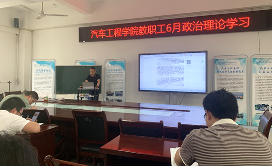 6月10日,汽车工程学院于奥训楼403开展教职工6月政治理论学习,学习会由汽车工程学院党总支书记、院长夏平主持,汽车工程学院全体教师参加会议。