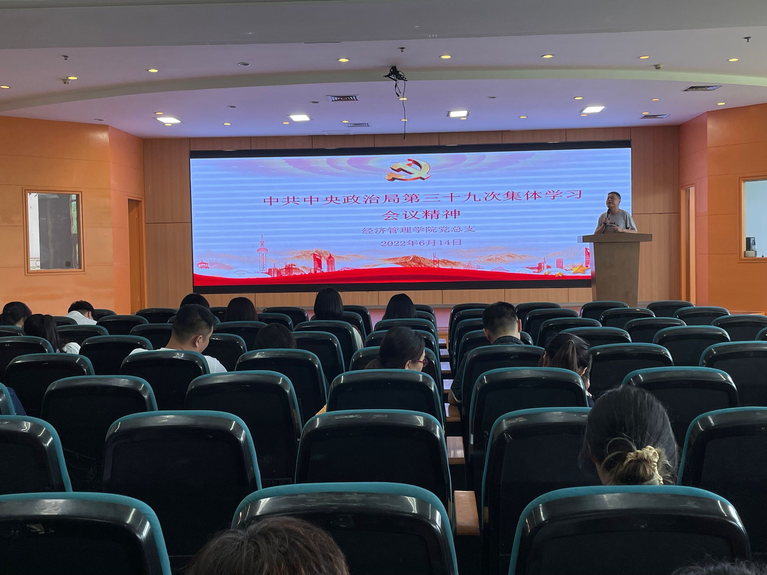 6月14日下午,经济管理学院在沙龙校区综合楼2楼学术报告厅开展6月政治理论学习。会议由经济管理学院专职组织员李静主持,经济管理学院全体教职工参加学习。
