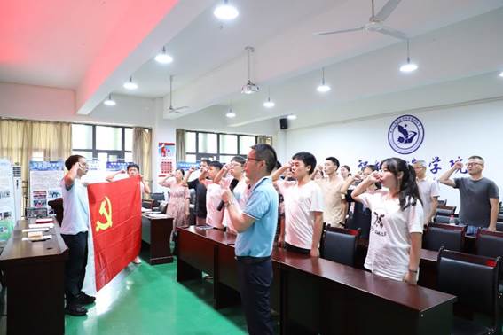 随后,举行了入党宣誓仪式。新党员在党旗下宣誓,老党员重温了入党誓词,党员们在响亮的誓言里坚定自己的初心使命。
