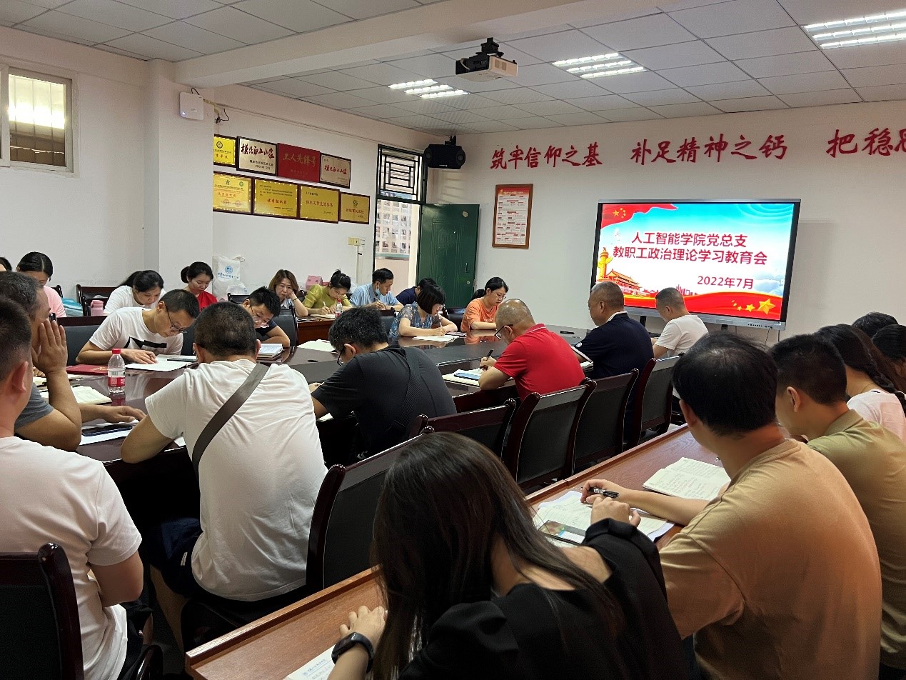 7月4日15:00,人工智能学院党总支在信科楼503会议室召开了7月全体教职工政治理论学习会。会议由人工智能学院党总支书记熊泽明主持。