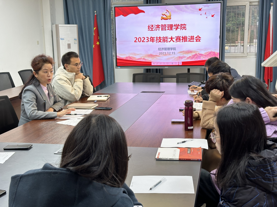 12月15日下午,经济管理学院组织召开2024年技能大赛推进会。会议由经济管理学院党总支书记、院长赵琳主持,党总支副书记张恩广,各赛项指导教师以及参赛教师参加会议。