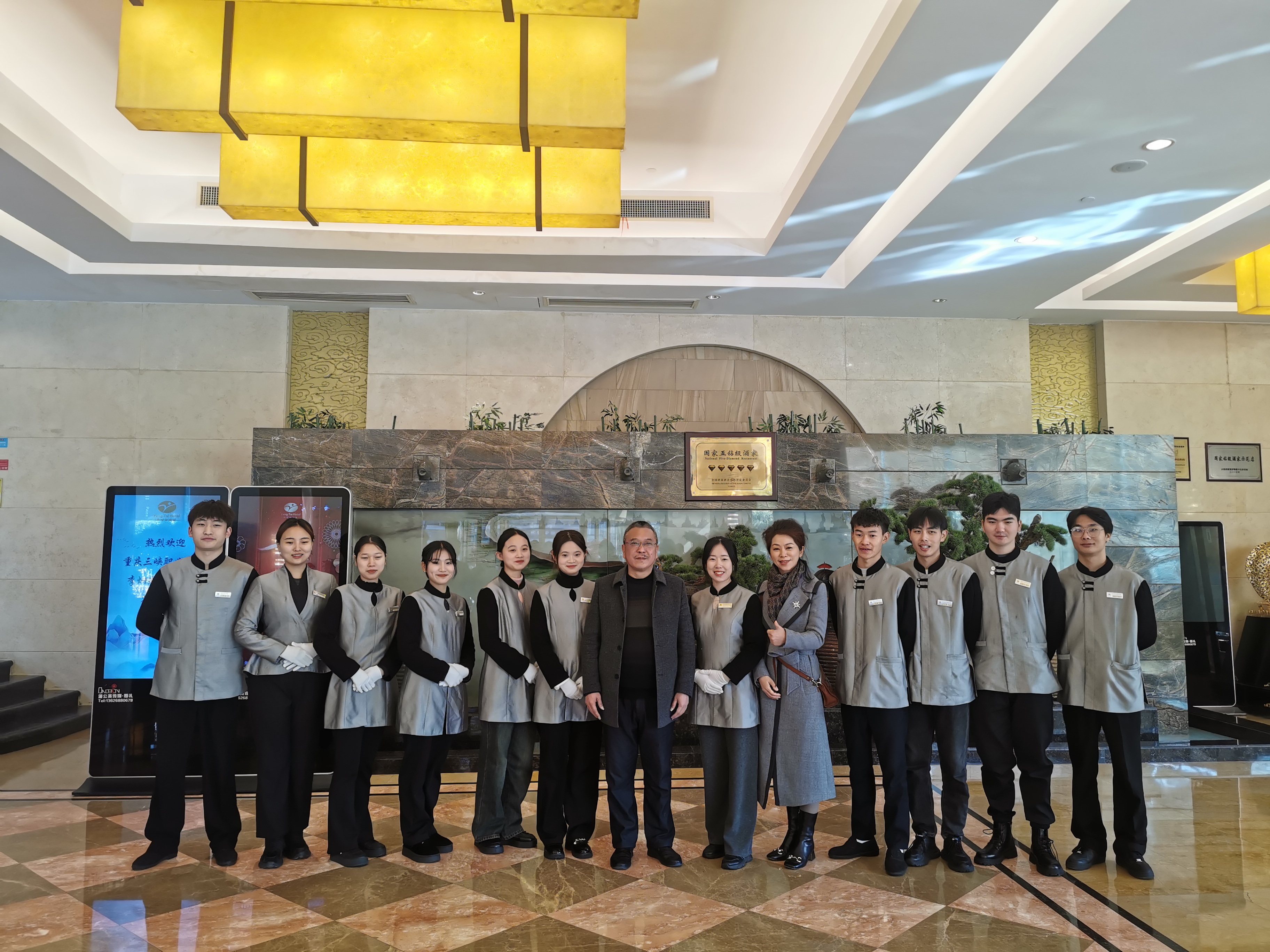 为进一步加强跨省实习管理,深化落实校企合作,切实关心和帮助学生实习成长,12月22日,学院院长李炯光带队赴浙江绍兴柯桥永泰柯岩酒店和永泰望湖酒店走访看望60余名参加岗位实习的2022级酒店管理与数字化运营专业实习生,党政办、教务处、人事处、经济管理学院等相关部门负责人陪同。