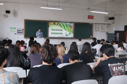 授课中,丁廷发副校长特别寄语青年学子,从"衣食住行微循环"践行低碳生活,以"专业智识硬实力"攻关绿色科技,用"知行合一真行动"参与生态实践,构建起个人成长与绿色发展的价值共同体。