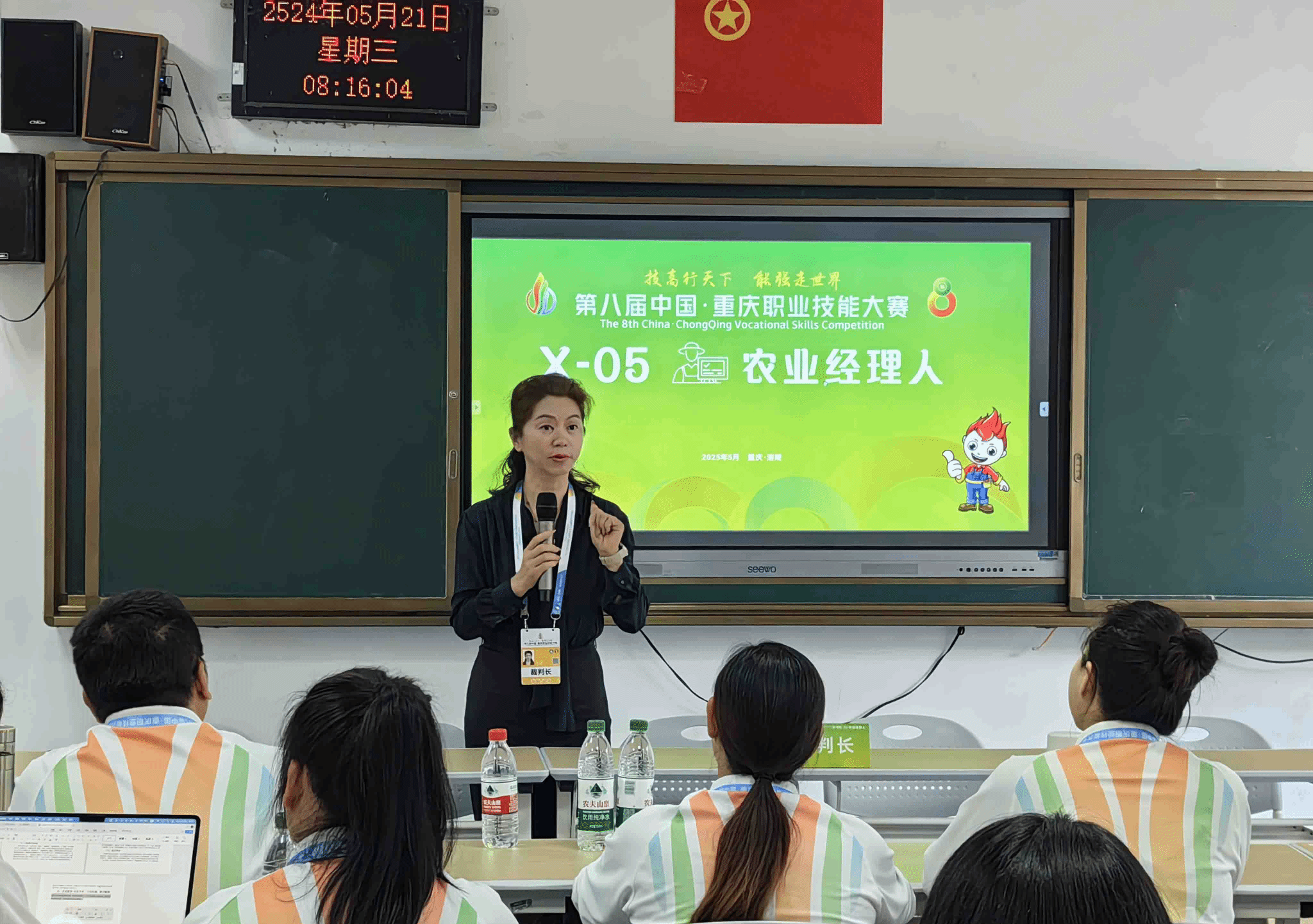 为深入贯彻落实习近平总书记关于技能人才和职业技能竞赛工作的重要指示批示精神,大力弘扬劳模精神、劳动精神和工匠精神,充分发挥职业技能竞赛引领带动作用,以赛促教、以赛促培、以赛促评、以赛促建,5月20日至5月23日,由重庆市人民政府主办,市人力资源和社会保障局、市教委、市农业农村委、市总工会、团市委、市妇联和涪陵区人民政府承办的第八届中国·重庆职业技能大赛在涪陵区举办。我校经济管理学院承办的“农业经理人”赛项在“重庆工贸职业技术学院”赛场举行。