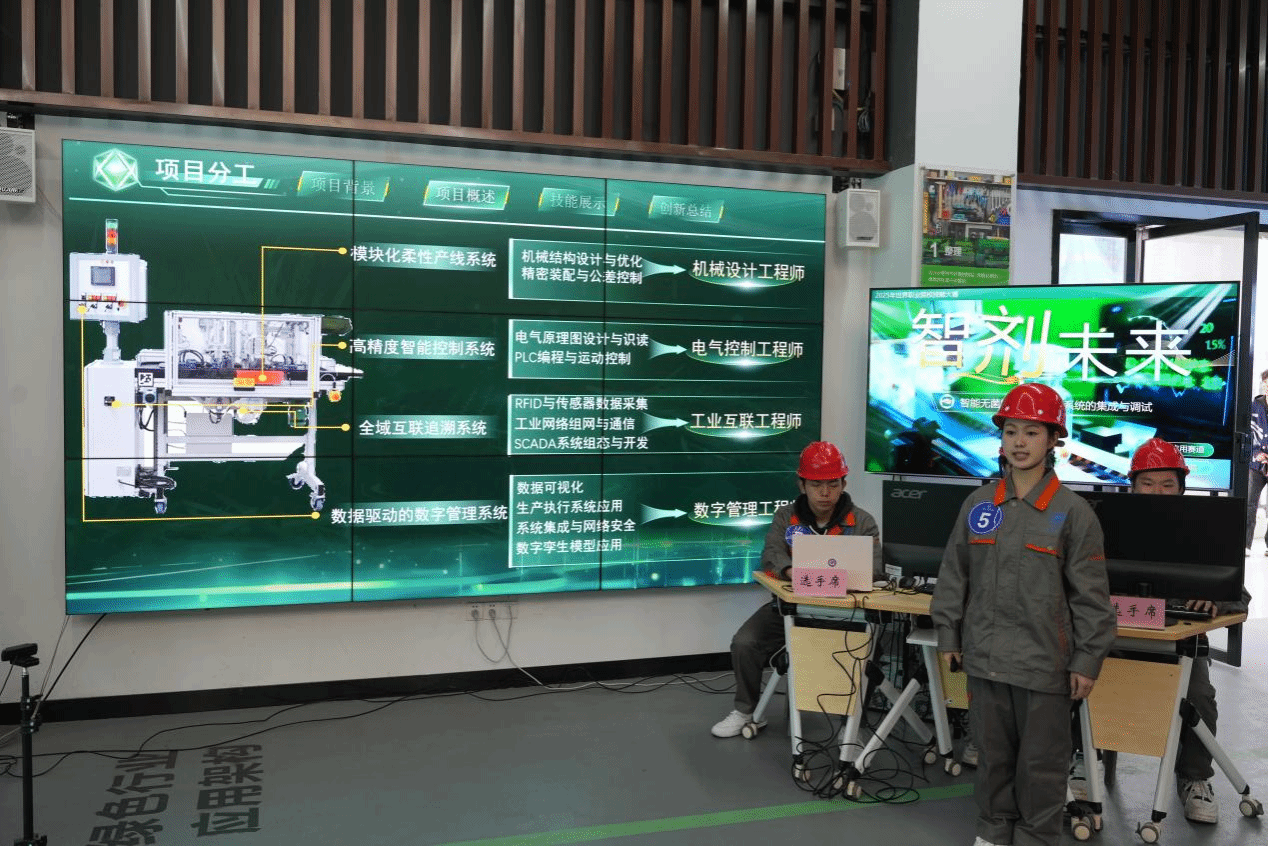 比赛中,团队严守行业标准,以规范的操作、前沿技术应用及清晰的讲解,在技能水平、职业素养等五大维度表现突出。项目既契合智能装备应用前沿趋势,又满足产业转型升级需求,其解决方案具备较强的实践推广价值。
