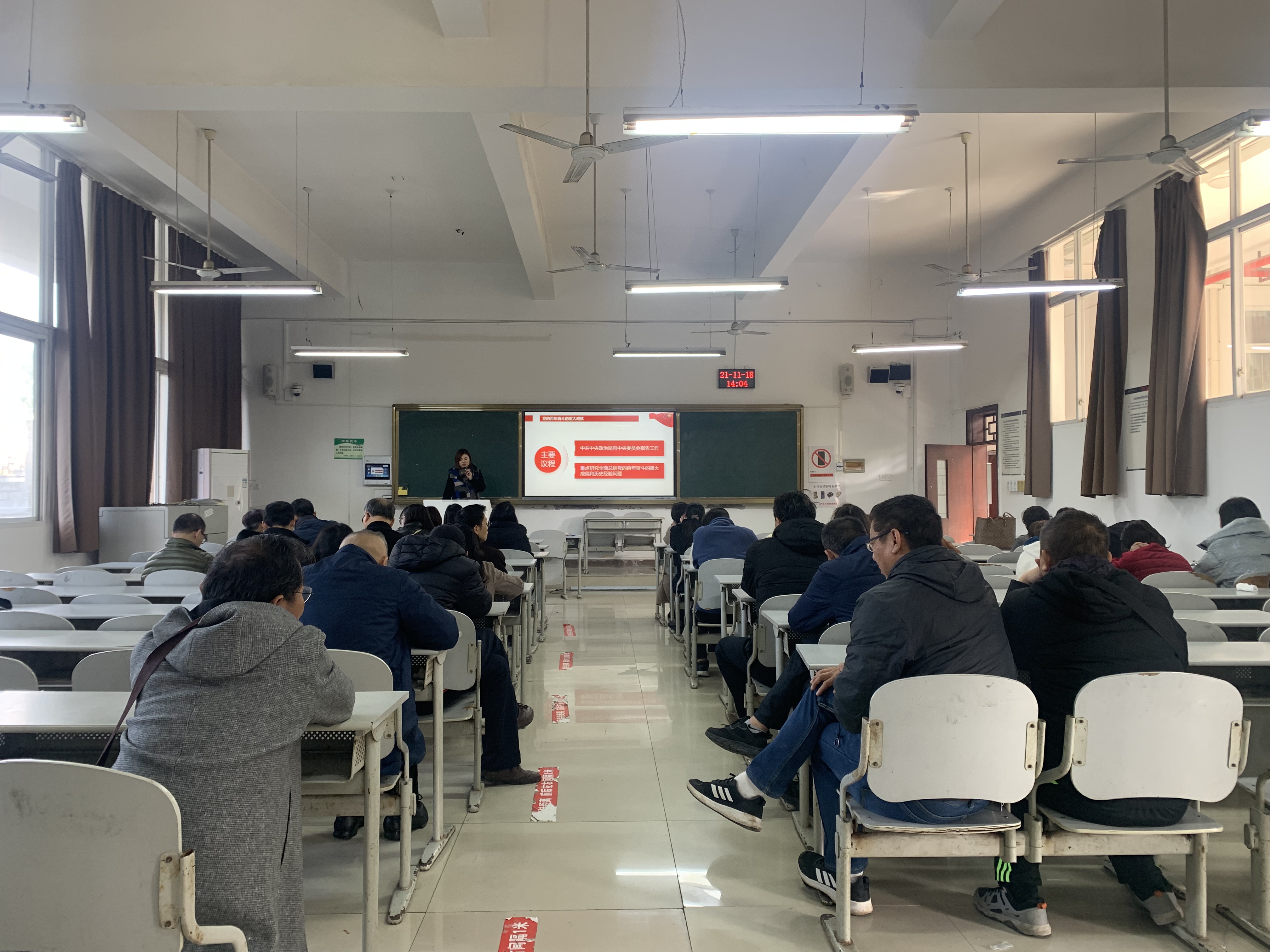 会上,潘雪以“学习贯彻中国共产第十九届中央委员会第六次全体会议公报”为主题作专题报告,带领大家从全会的基本情况、党的百年奋斗的重大成就、党的百年奋斗的历史经验以及不忘初心实现第二个百年奋斗目标的新赶考之路四个方面对党的十九届六中全会精神进行了详细学习。她强调,党的十九届六中全会是党在过去一百年取得光辉成就后、开创第二个百年之间的重要会议,在党的历史上占有重要地位,全体教职工要认真学习消化会议精神,真正学深悟透,学懂弄通,并结合自身岗位工作贯彻落实,推动全会精神进校园、进课堂、进教材、进头脑。