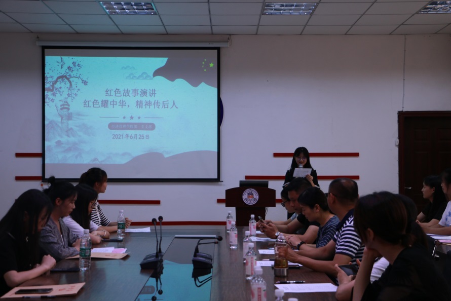 为重温红色经典,传承红色基因,汲取前行智慧力量,6月25日下午,经济管理学院党总支第一党支部以“学党史、强信念,跟党走”为主题开展了“颂红色经典,讲红色故事”演讲比赛,支部全体党员师生参加了活动。