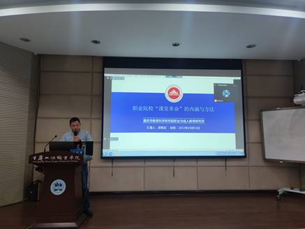 随后,刘艳宾副处长介绍了学校典型案例征集工作的背景及总体安排,强调各二级学院要明晰“三教”改革具体任务清单,细化落实到每一个团队、每一门课程、每一个课堂。