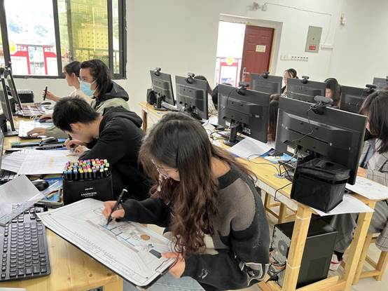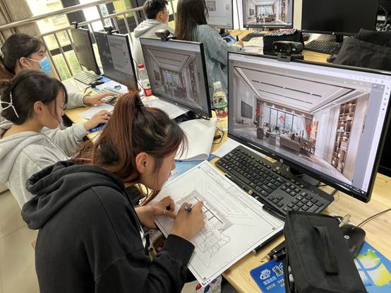 本次考试分为理论、实操两部分。理论部分重点考查考生对室内制图相关知识、室内设计基础知识、空间形态构成知识、人体工程学的掌握及理解,对施工工艺、质量验收、技术资料管理及设计服务与管理等知识的熟悉和了解;实操部分重点考核考生作为施工图深化人员应具备的能力,包括看图识图、图纸深化、效果表达的能力及对制图规范的理解和应用能力等。考生需在理论实操两部分各达60分及以上才算通过考核。在时间紧、任务重的情况下,为确保考生取得理想成绩,建筑室内设计专业教师团队认真进行考前辅导,多次组织学生考前强化训练。