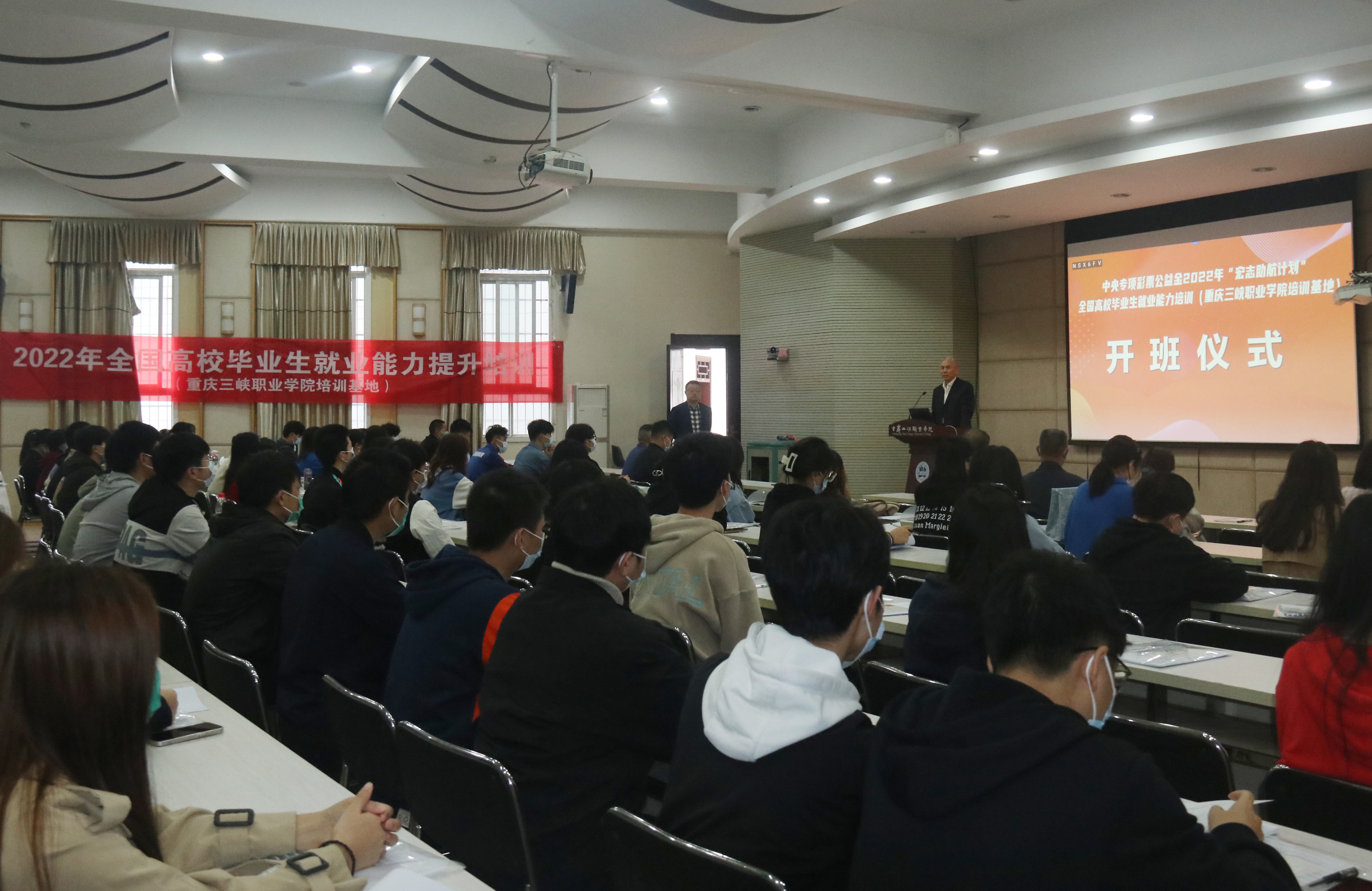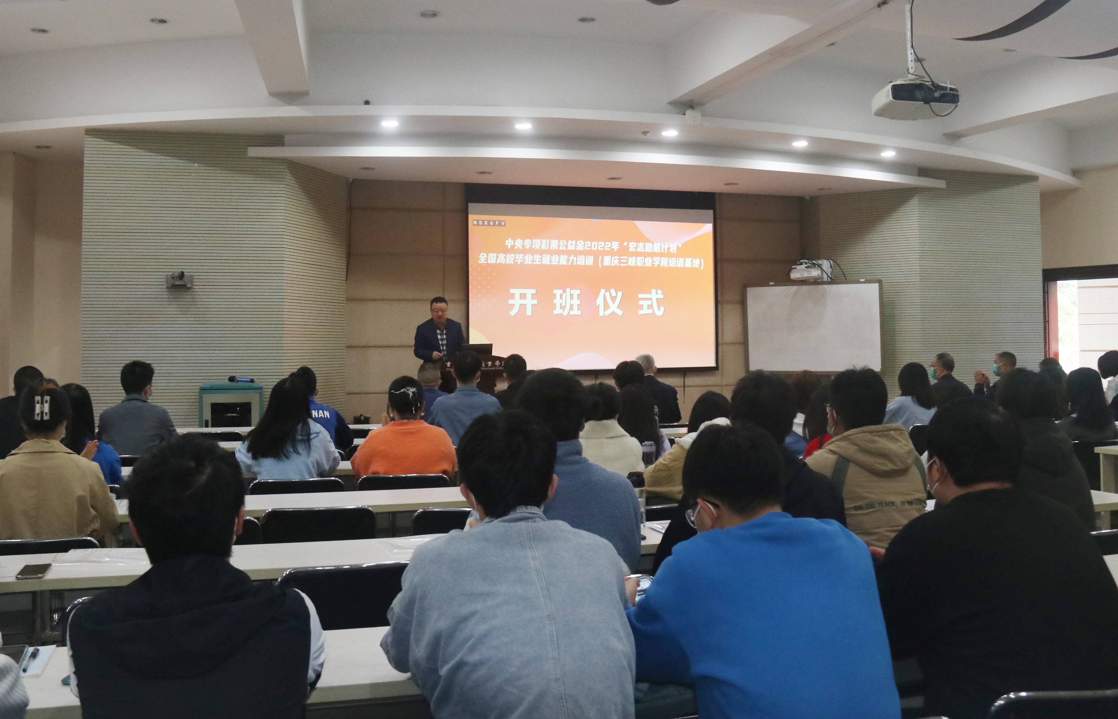 10月29日上午,2022年教育部中央专项彩票公益金“宏志助航计划”全国高校毕业生就业能力培训(重庆三峡职业学院基地)开班仪式在学院博雅楼多功能会议室顺利举行。学院党委委员、副院长赵福奎,重庆市教委选派的指导专家,二级学院教师代表,招生就业处全体教职工和学员代表参加了开班仪式。仪式由学院招生就业处副处长徐明灿主持。
