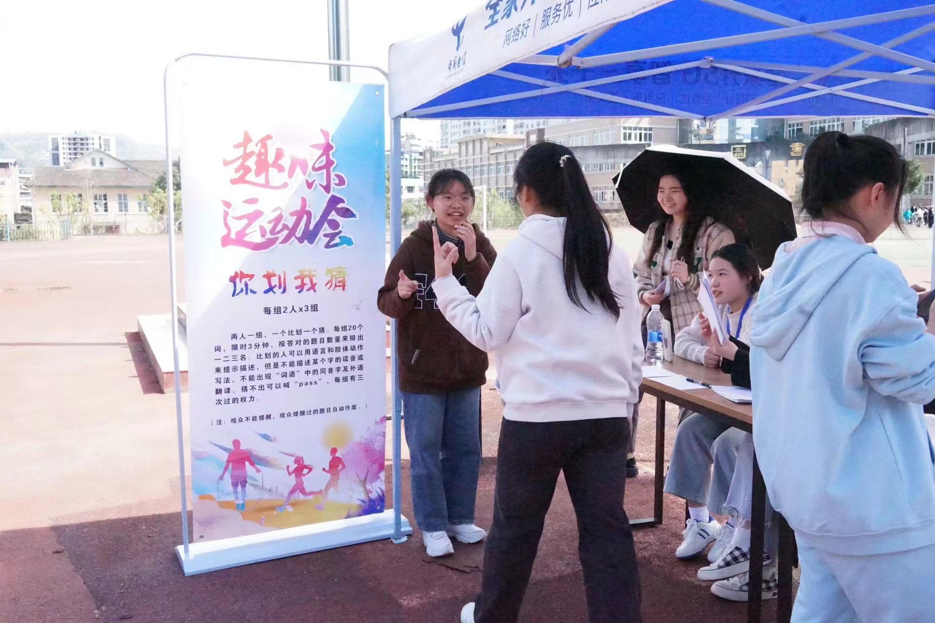 本次春季趣味运动会比赛项目丰富,趣味性十足。包括携足并进、你画我猜、呼啦圈、跑步、两人三足、乒乓球、羽毛球等项目。比赛现场,同学们秉持“友谊第一,比赛第二”的原则,在赛场上尽情投入、精神饱满,场内的观众也情绪高涨、拍手称赞,赛场上充满着呼喊声与欢笑声,尽显青春朝气。赛后,同学们纷纷表示,趣味运动会不仅培养了同学们强身健体的意识,让校园生活更加丰富多彩,也让同学们在活动中学会了团队协作,展现了同学们的青春活力。