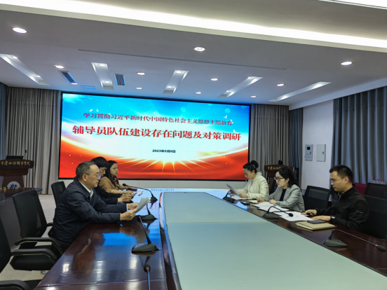 为扎实开展学习贯彻习近平新时代中国特色社会主义思想主题教育,5月9日下午“辅导员队伍建设存在问题及对策调研”主题教育调查研究小组在行政楼303召开主题调研工作研讨会。