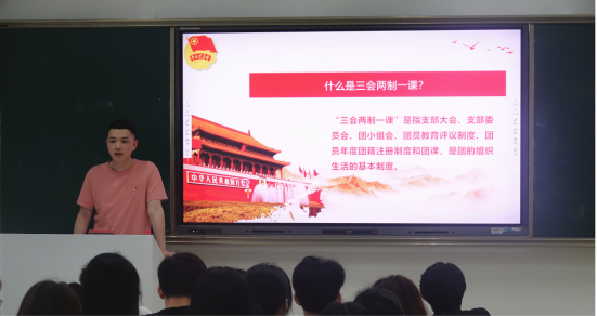 院团委汪子恒老师带领大家共同学习了《中国共产主义青年团基层组织“三会两制一课”实施细则(试行)》的相关内容。他讲到,落实“三会两制一课”,是共青团保持和增强政治性、先进性、群众性的必然要求,是推进团要管团、从严治团的重要载体,是加强团员思想政治教育和自我教育,强化团员意识,提升基层团组织凝聚力和战斗力的制度保障。