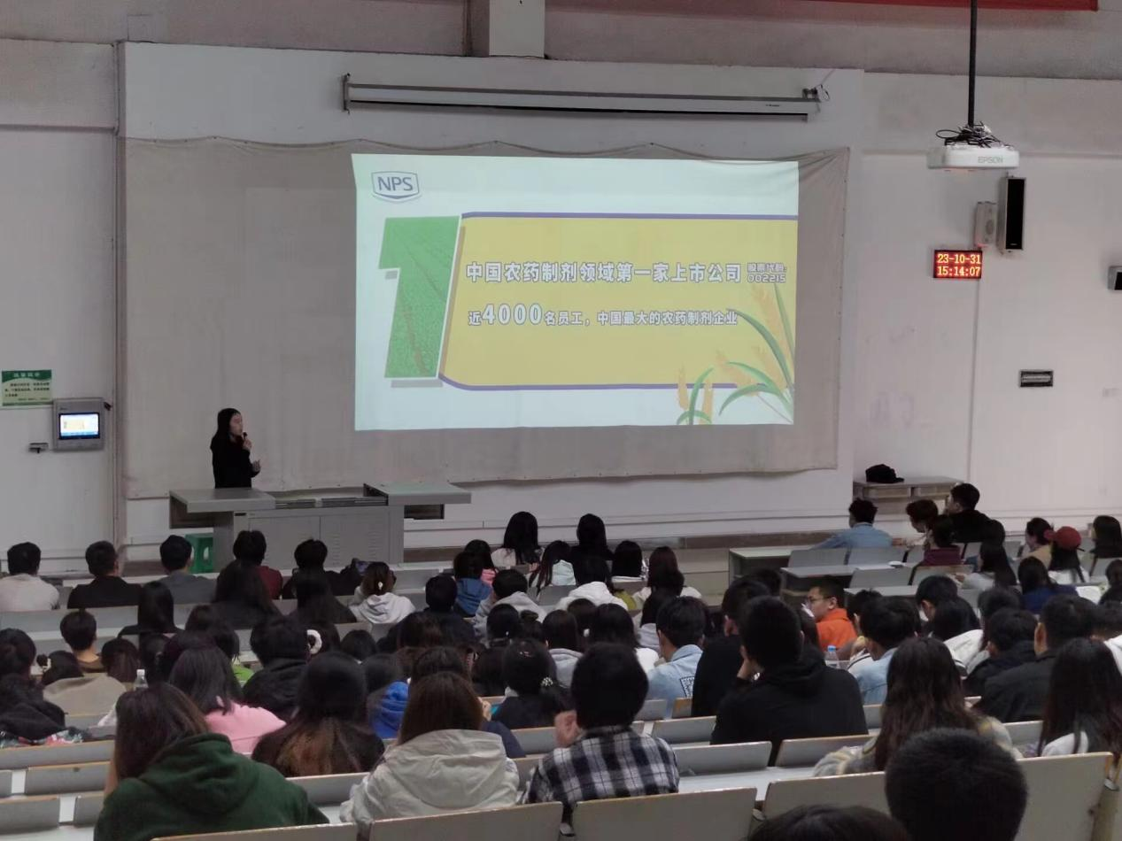 10月31日,深圳诺普信作物科学股份有限公司一行到校召开2024届毕业生专场宣讲会,农林科技学院2024届全体毕业生到场参会。
