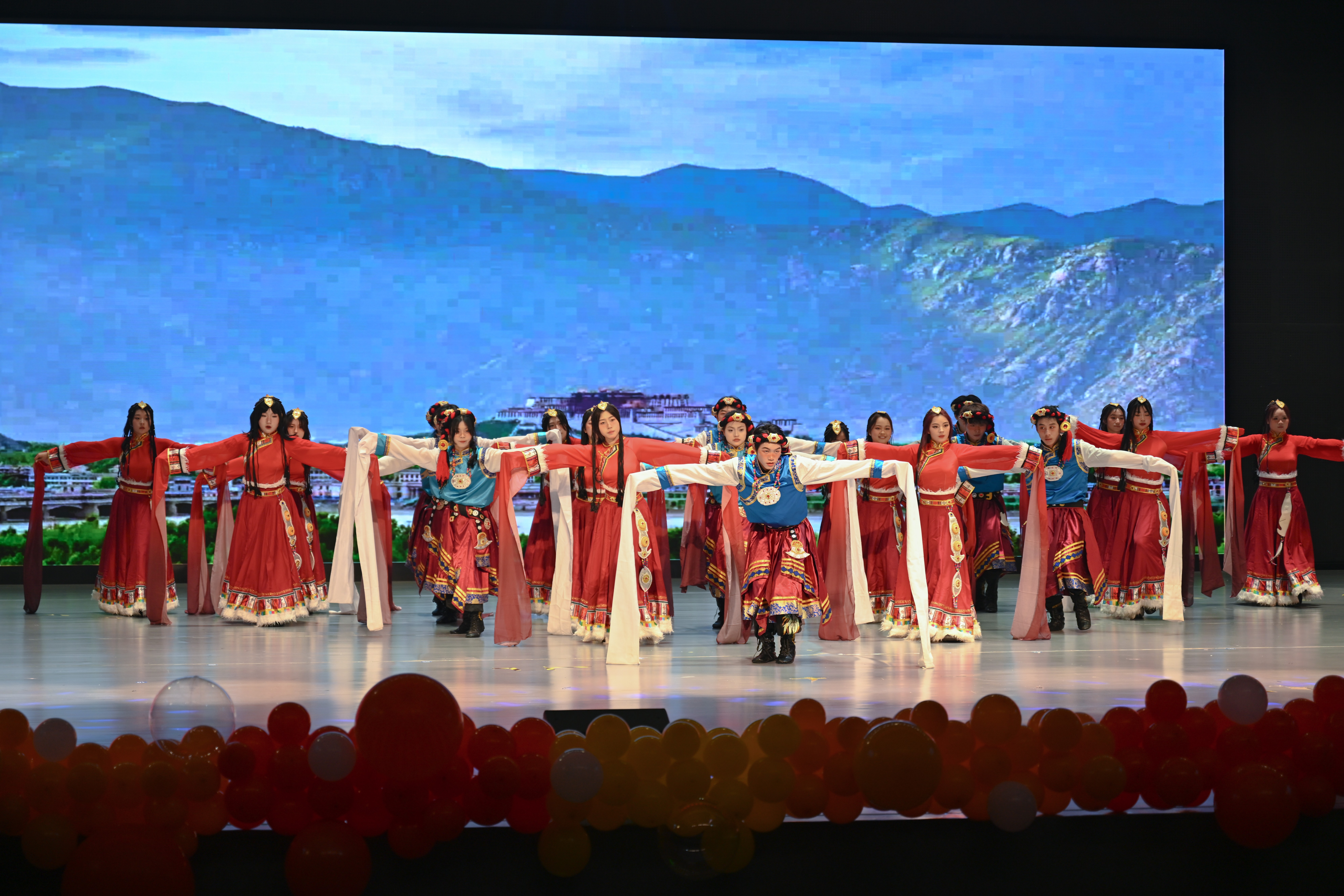 来自动物科技学院的青年学子载歌载舞,用藏族舞蹈《民族团结之花》抒发了对光荣的中国共产党、伟大的祖国的美好祝愿。