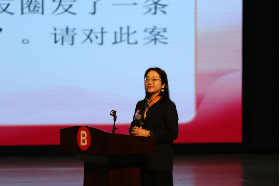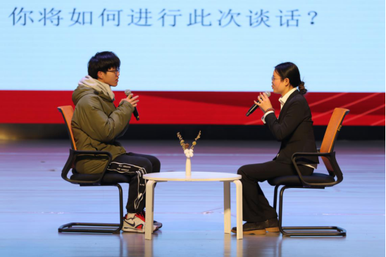 谈心谈话主要考察辅导员对学生的教育引导能力和解决实际问题的能力,参赛选手和学生助演通过题目设定在现场还原了平时工作中为学生答疑解惑的各种情景,精彩的互动赢得了在场观众的阵阵掌声。