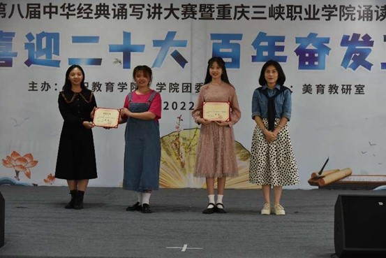 选拔赛参赛选手来自6个二级学院共47组选手参赛,比赛现场,选手们镇定自若、诵读经典抑扬顿挫、韵味十足,竞相施展才华,表现出色。经过半天的角逐,评选出一等奖2名、二等奖3名、三等奖4名、优秀奖5名。接下来获奖选手在美育教研室的集中编排训练下将代表学院参加重庆市第八届中华经典诵读大赛决赛。