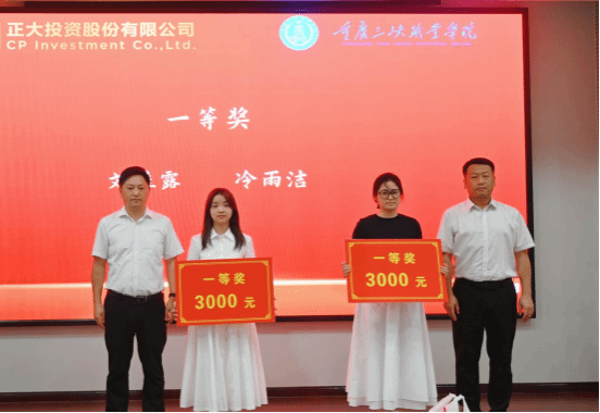 仪式伊始,张传师副校长发表讲话,他向获奖同学致以热烈祝贺,着重强调校企合作的重要性。他指出,学校与正大集团合作历史悠久,“正大班”学子一直在传承正大精神,扎根畜牧兽医行业。随后,正大集团重庆区生猪养殖事业部人力资源部经理龚运海宣读第四届正大奖学金获奖名单,并举行颁奖仪式。2022级畜牧专业冷雨洁作为获奖学生代表发言,她真诚感谢学校与企业的培养,立志在未来深耕专业领域。