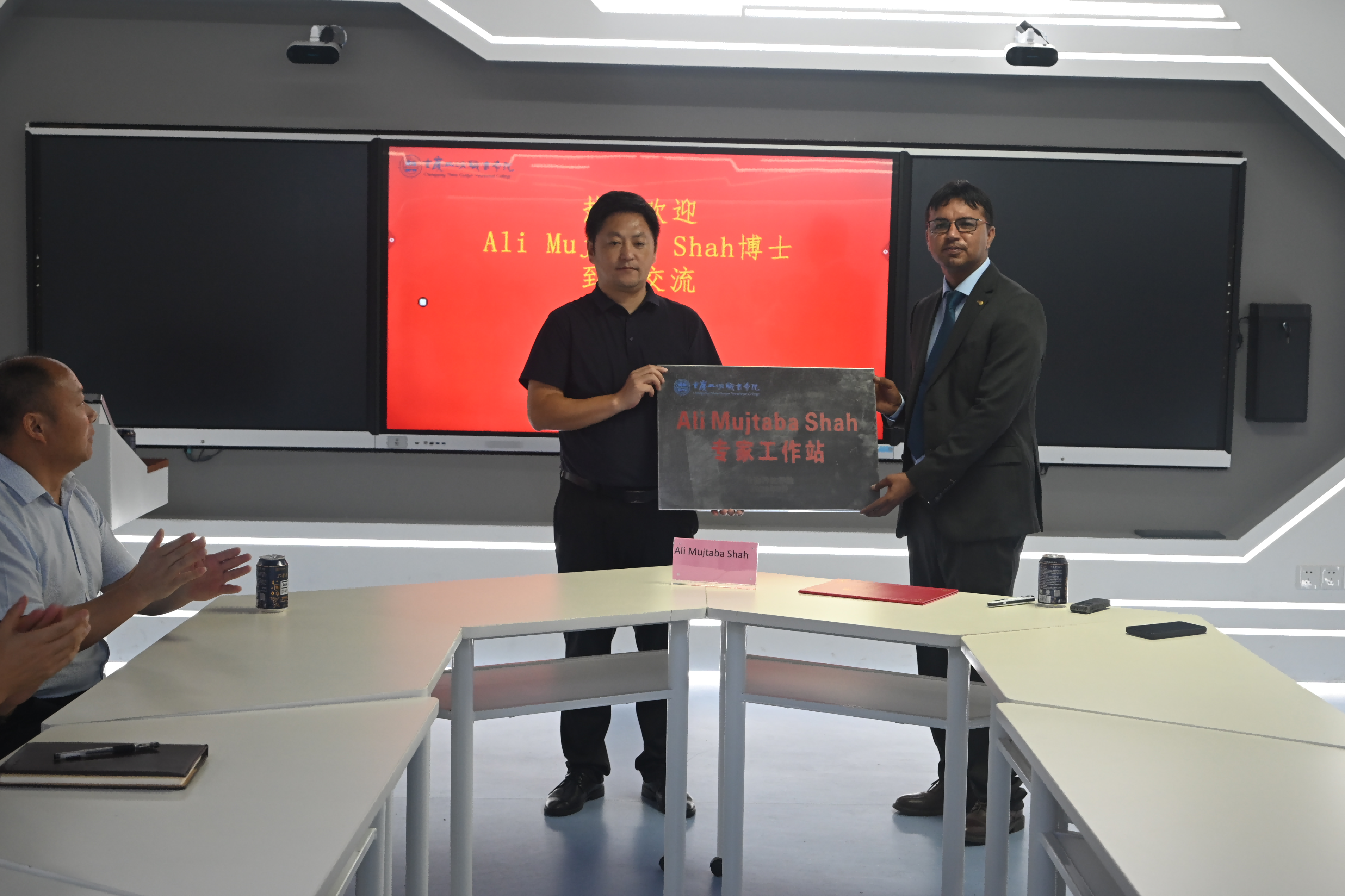 随后,动物科技学院党总支书记、院长张传师为Ali Mujtaba Shah博士颁发“客座教授”聘书和“重庆三峡职业学院Ali Mujtaba Shah专家工作站”,标志着动物科技学院首个校内国际专家工作站成立,为开展常态化国际交流搭建了良好平台,也将进一步推动学校对外交流的步伐。