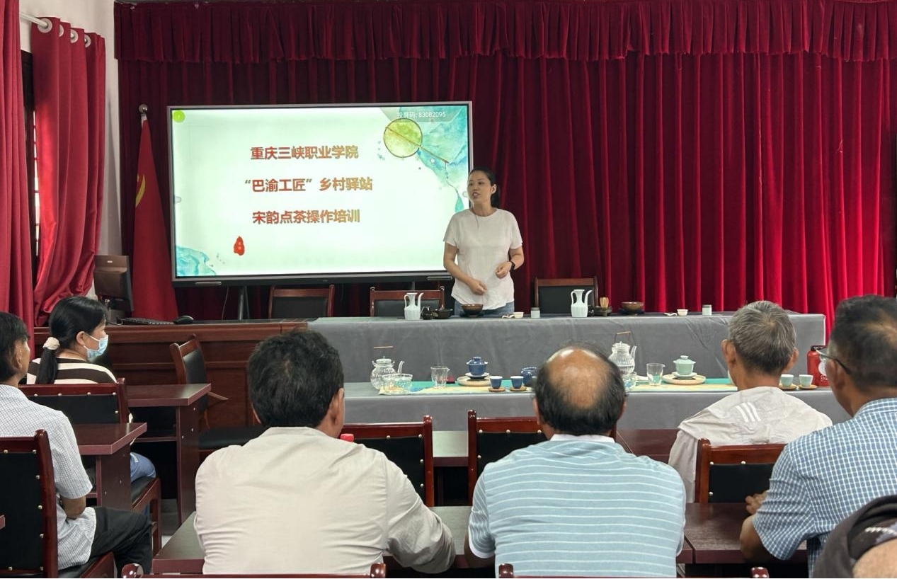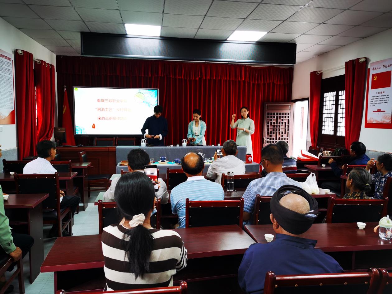 为深入学习贯彻党的二十大精神,更好的弘扬优秀传统文化、坚持以“传承+创新”技能人才建设为引领,践行大国工匠精神,6月28日,“巴渝工匠”乡村驿站茶艺团队受恒合乡委托,为恒合乡五星村茶产业公司、农户等20家开展“理论+现场教学”的非遗“宋韵点茶”培训,努力传承非物质文化遗产,探索构建更具吸引力和竞争力的技能人才培育体制机制。