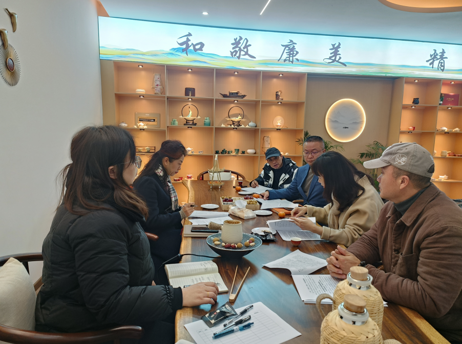 1月17日,万州区多经站站长刘翔、万州区科技局农业科科长何淼和重庆贡悦农业科技有限公司董事长谢健等一行来访我院赵琳茶艺师市级首席技能大师工作室,与学院党总支书记﹑院长﹑大师工作室负责人赵琳共同探讨“政校企”联动打造白茶产业学院和研究院,助推万州区茶产业提质增效。