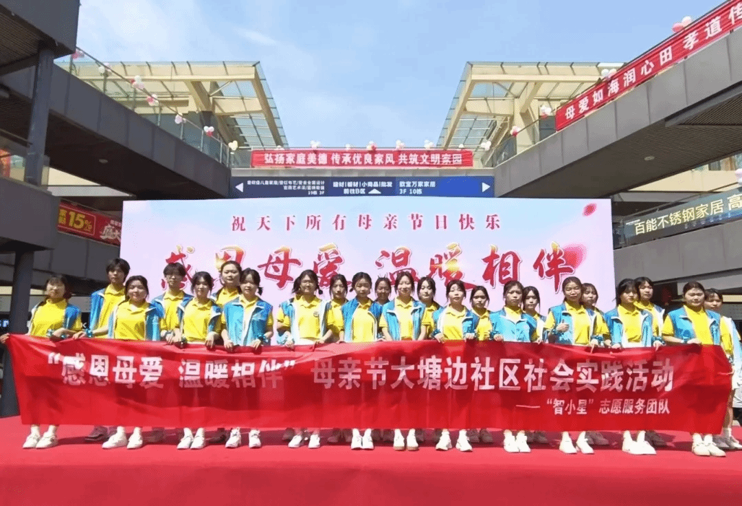 5月9日上午,在母亲节来临之际,智能制造学院“智小星”志愿服务队受邀参加龙都街道大塘边社区“感恩母爱,温暖相伴”活动,在友豪万商城中庭为社区居民送上诚挚的母亲节祝福。