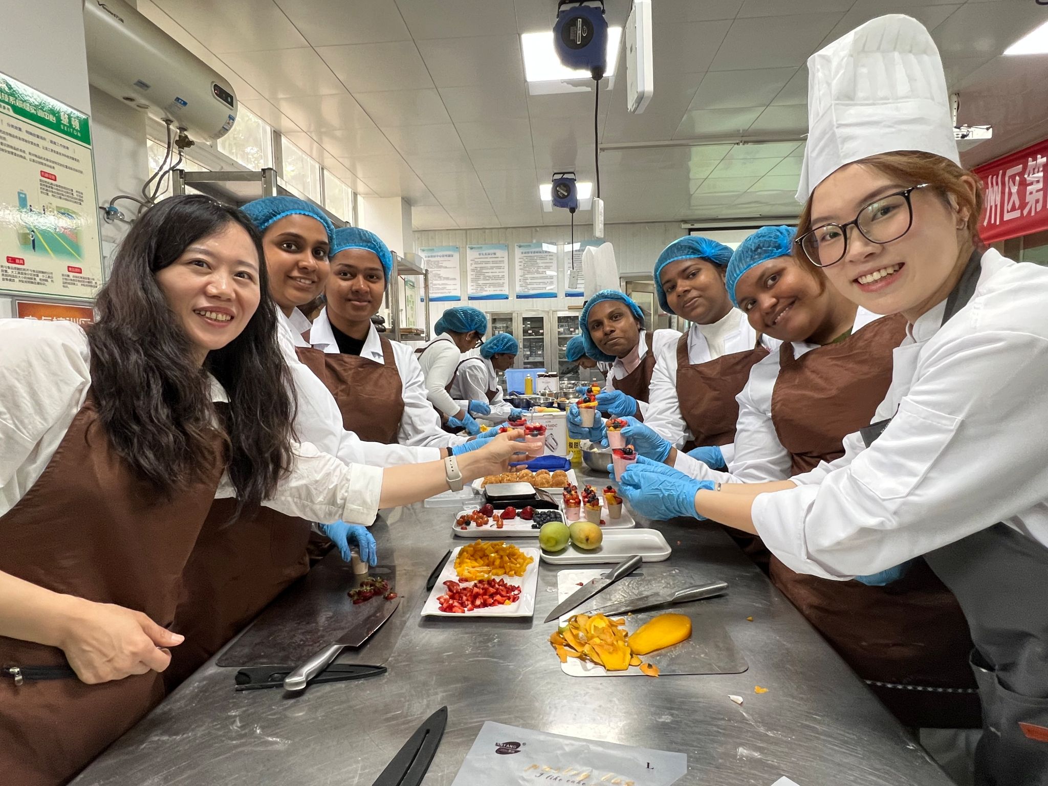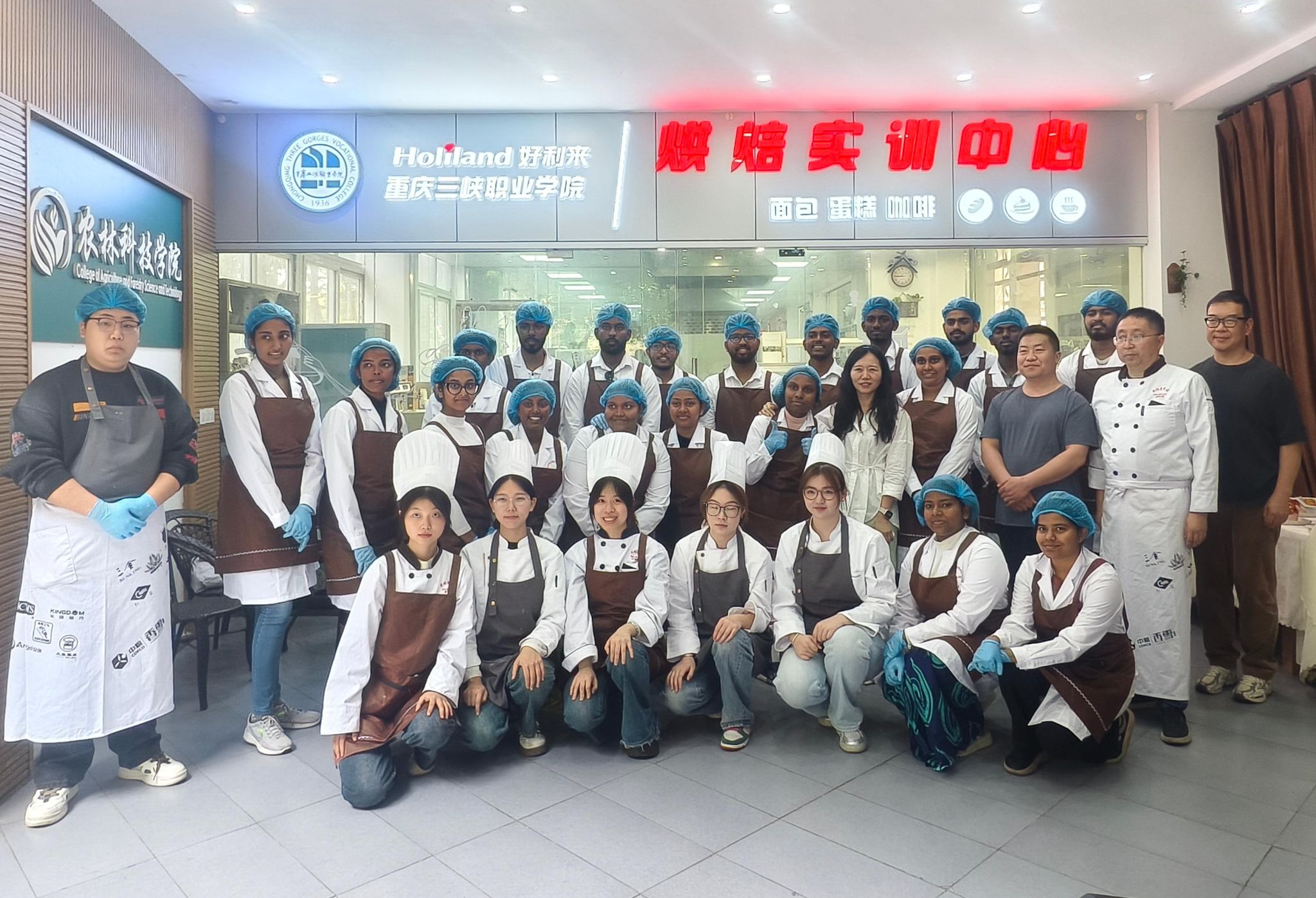 在好利来烘焙实训中心,来自斯里兰卡的园艺技术专业留学生与食品智能加工技术专业的同学们欢聚一堂,共同庆祝这一特殊意义的节日。斯里兰卡留学生们满怀热情地介绍了他们丰富多彩的新年习俗,并带来了传统美食奶饭等,让中国学生们得以亲身体验斯里兰卡的饮食文化。食品智能加工技术专业的同学们则带领斯里兰卡留学生们一同制作了墨西哥面包、水果慕斯、奶油泡芙等色香味俱佳的美食。在制作过程中,两国学生不仅互相学习、共同进步,更在轻松愉快的氛围中加深了对彼此文化的了解。
