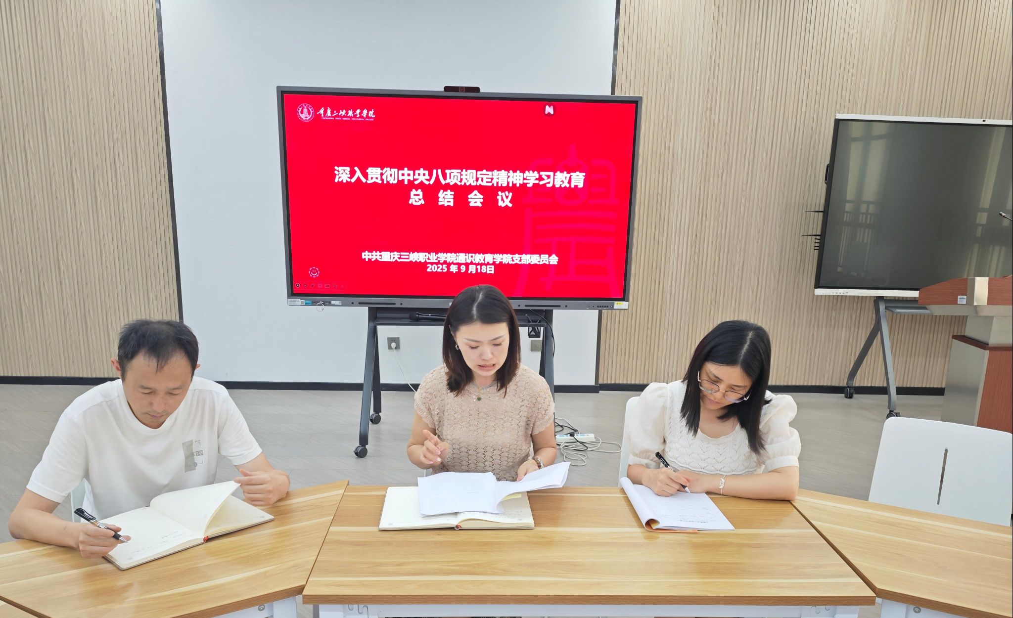 根据学校党委工作安排,9月18日下午,通识教育学院党支部在奥训楼404室以支委会会议形式召开深入贯彻中央八项规定精神学习教育总结会。会议由通识教育学院党支部副书记、通识教育学院副院长潘雪主持。