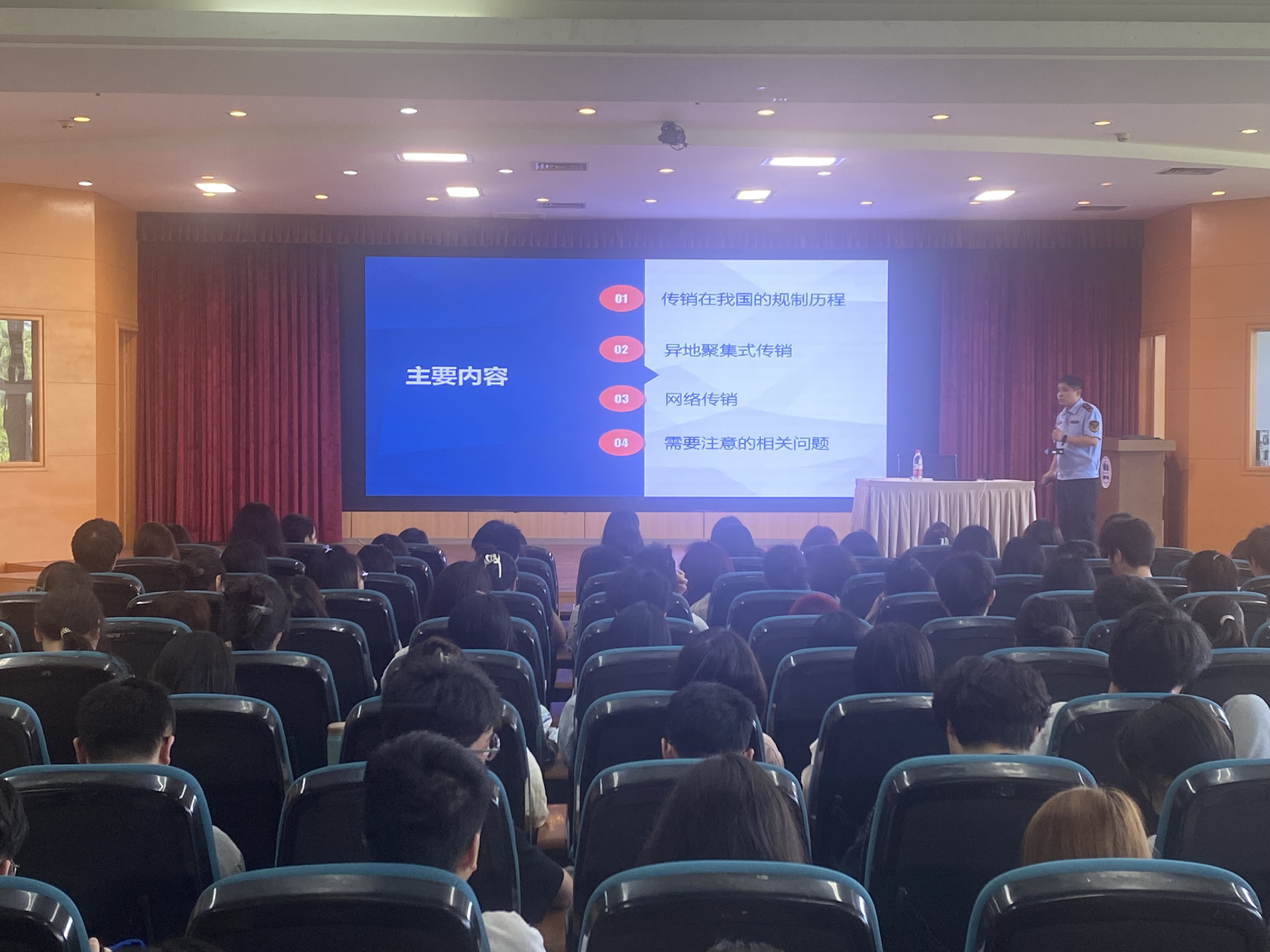 邹定国科长围绕“传销在我国的规制历程、异地聚集式传销、网络传销、需要注意的相关问题”四个方面向同学们详细讲解了传销的本质、常见手段、表现特征,并结合自身工作过程中遇到的市场案件处理经验以及受骗者遭遇状态,加深了同学们对传销的认知程度,提高了安全防范意识,大家纷纷表示,在未来的生活中一定会提高警惕,自觉抵制传销、远离传销。