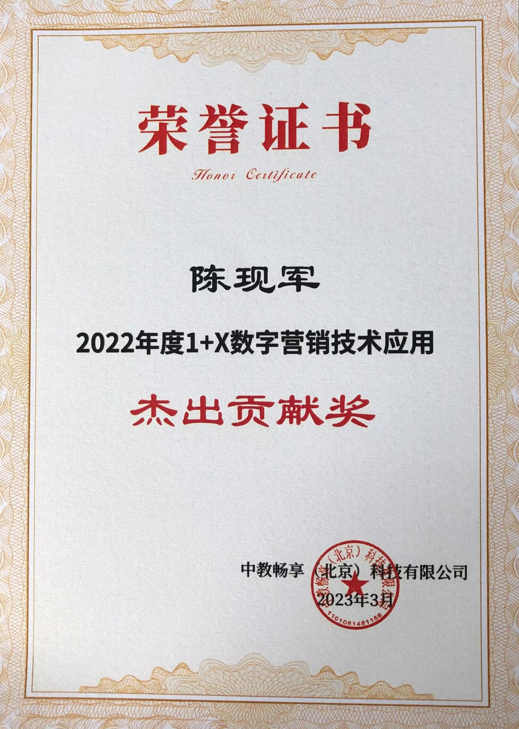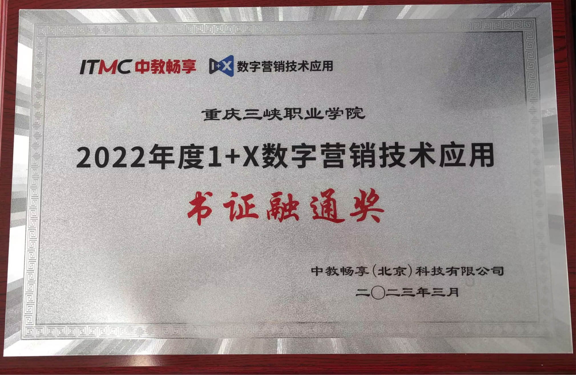 近日,1+X数字营销技术应用评价组织中教畅享(北京)科技有限公司对在2022年“1+X数字营销”证书推进工作中做出重要贡献的试点院校与个人进行了集中表彰。我校在1+X数字营销技术应用工作中的卓越表现和突出成绩,被授予“书证融通奖”,经济管理学院副院长陈现军被授予“杰出贡献奖”,宋丽丽老师被授予“匠心育人奖”。