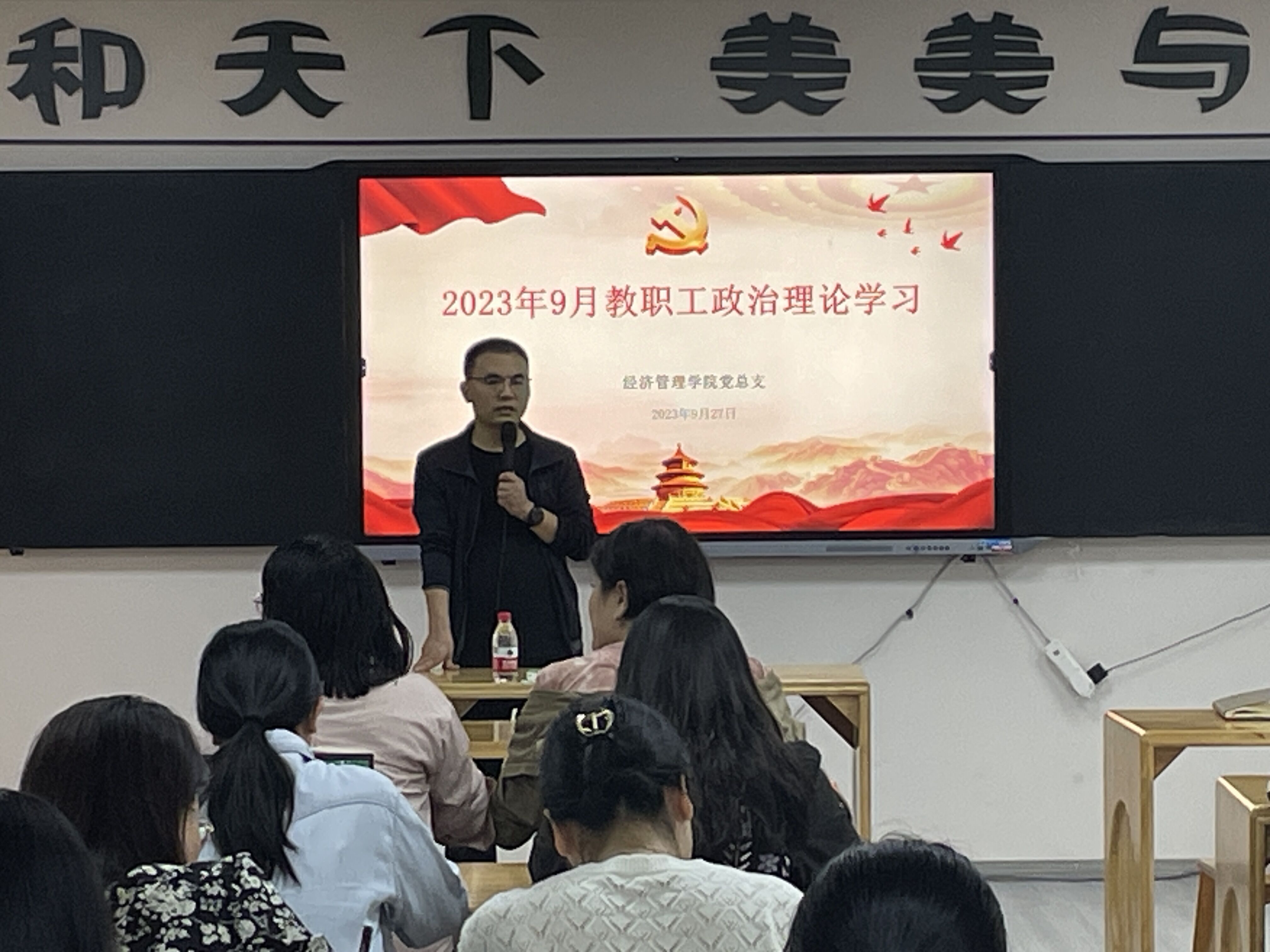9月27日上午,经济管理学院在沙龙校区综合楼茶艺实训室召开学院教职工9月政治理论学习和师德师风教育会。本次学习由经济管理学院党总支副书记张恩广主持,全体教职工参加。