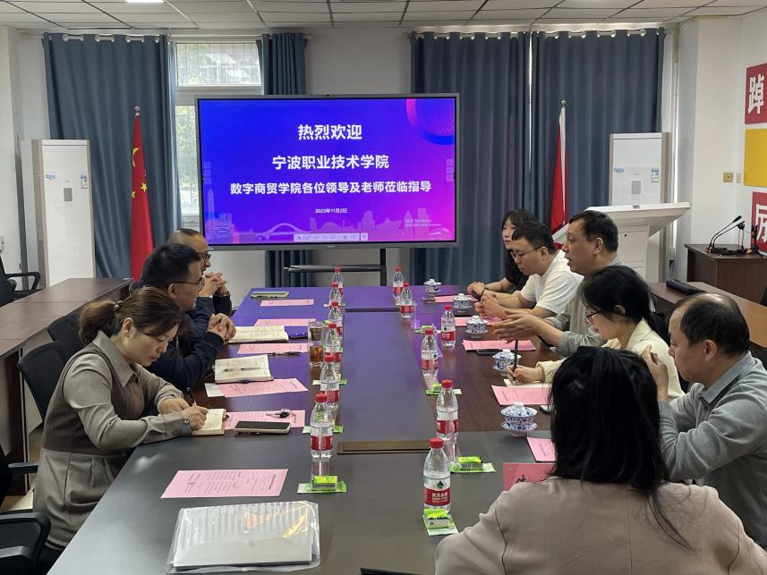 会上,陈现军副院长对宁波职业技术学院电子商务专业主任韩剑鸣一行的来访表示欢迎,介绍了我院专业、师资力量、学科发展以及近年来取得的成绩等基本情况,希望双方在人才培育、科学研究、运行机制等方面进一步加强沟通与合作。张恩广副书记介绍了网络营销与直播电商专业的发展情况,并在教育教学、技能大赛、专业建设及社会培训等方面与韩剑鸣主任一行进行了深入的交流沟通。双方在研讨交流中,互学互鉴、共话提升,在师资队伍、专业建设和项目资源等方面就进一步加深合作达成了共识。