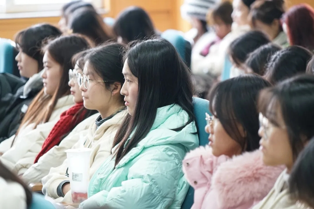 黄秀凤老师从中国婚俗文化的发展历史和礼仪习俗入手,详细为同学们介绍了古代嫁娶礼品、婚礼流程、婚礼禁忌等发展演变,对礼仪文化的发展阶段和精神本质进行了深入剖析,使学生对中国传统婚俗文化有了较为全面的了解,引起同学们极大的学习兴趣。