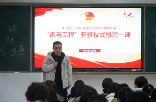 为深入学习贯彻党的二十大精神和团的十九大精神,引导师生深刻把握新时代伟大成就,围绕团学骨干的政治素养和和业务本领,充分发挥团组织的示范引领作用,培养更多优秀的新时代青年马克思主义者。经济管理学院于2023年12月4日中午在沙龙校区综合楼101教室举行了“青马工程”开班仪式暨第一课宣讲,开班仪式由经济管理学院党总支副书记张恩广主持,经济管理学院学生会全体成员参加开班仪式。